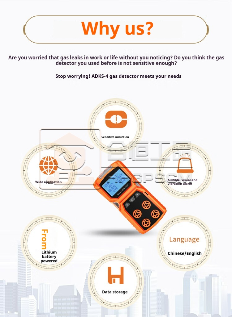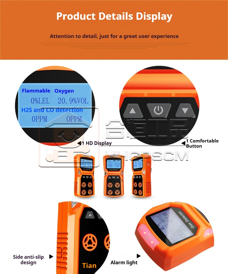 Product name:Four-in-One Gas Detector: Combustible, Oxygen, Carbon Monoxide, Hydrogen Sulfide, Confined Space Hazard Gas Alarm
