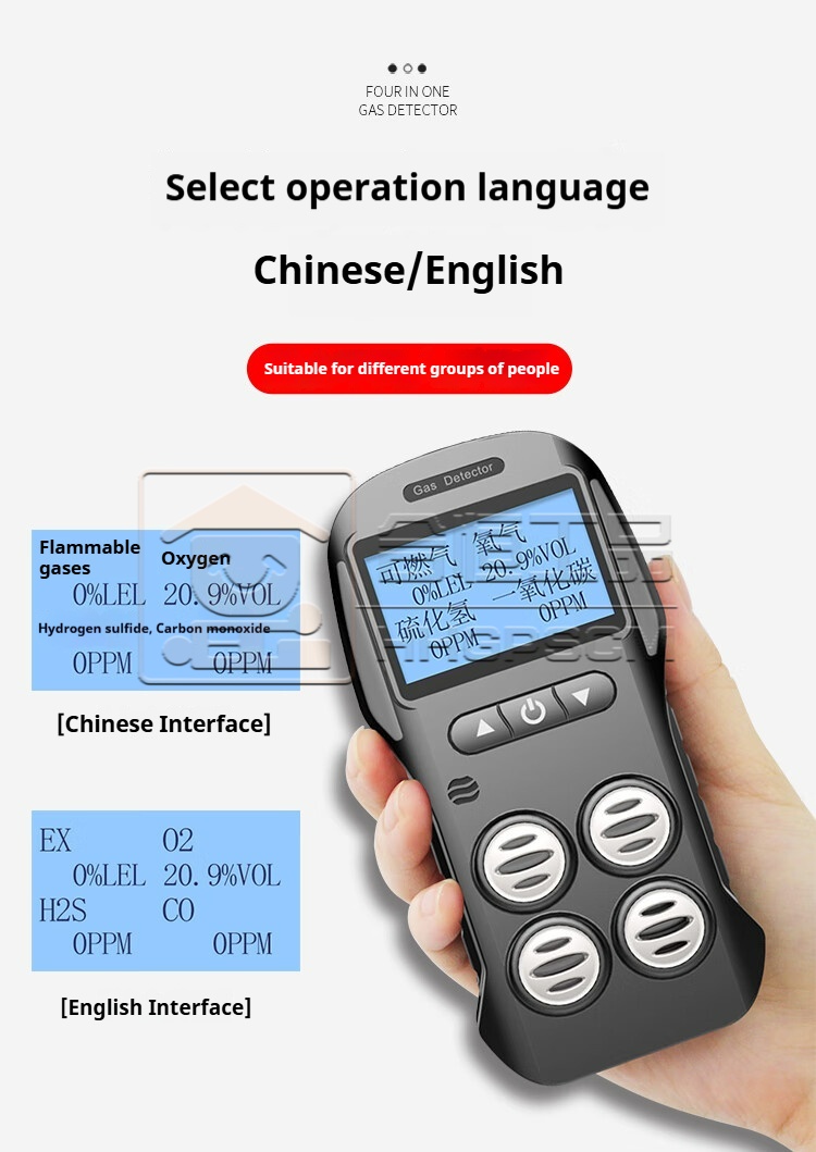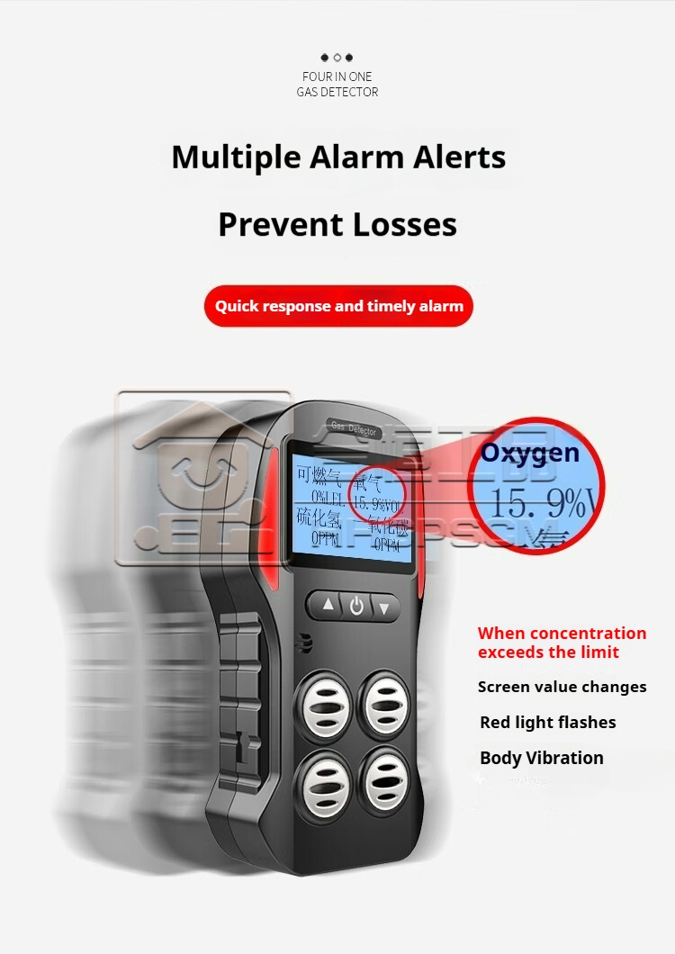 Four-in-One Gas Detector Portable Oxygen CO Hydrogen Sulfide Combustible Confined Space Concentration Alarm Four-in-One (X-4+)