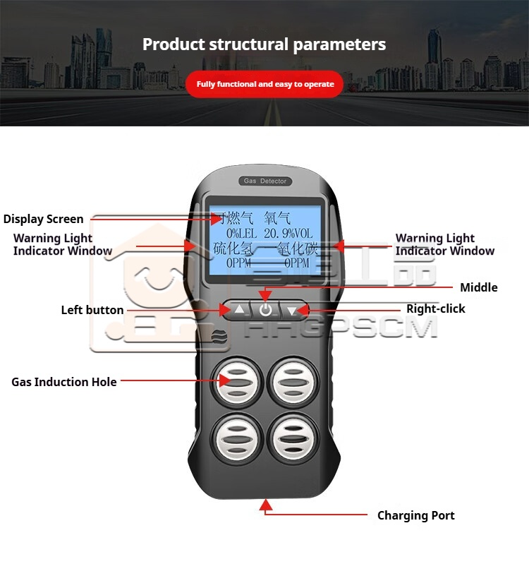 Product name:Four-in-One Gas Detector Portable Oxygen CO Hydrogen Sulfide Combustible Confined Space Concentration Alarm Four-in-One (X-4+)