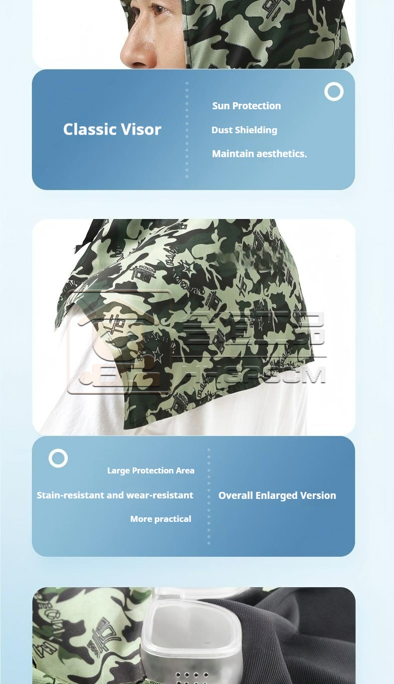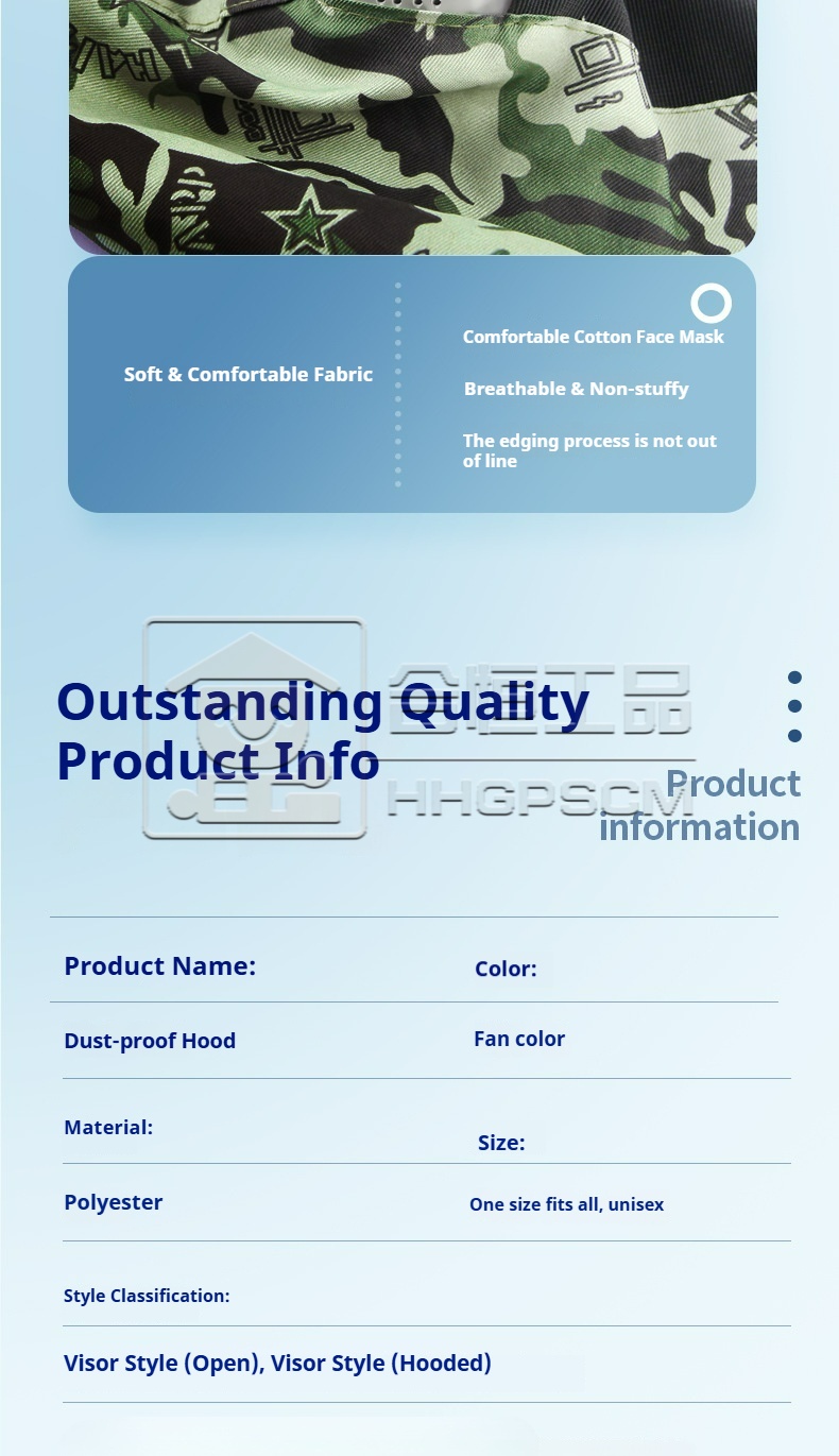 Product name:Breathable Camouflage Dust-Proof Hooded Cap for Loaders and Handlers (Unisex) – Thick, Durable, and Stain-Resistant Denim Hooded Cap