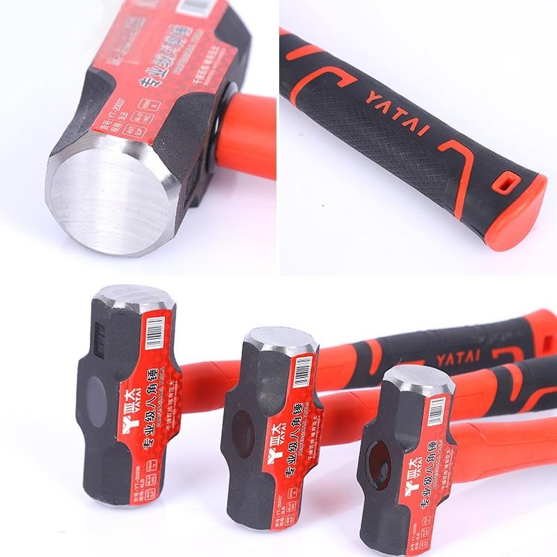 Plastic-coated octagonal hammer Multi-size stone carving and monument-making anti-vibration hammer Wall demolition octagonal hammer