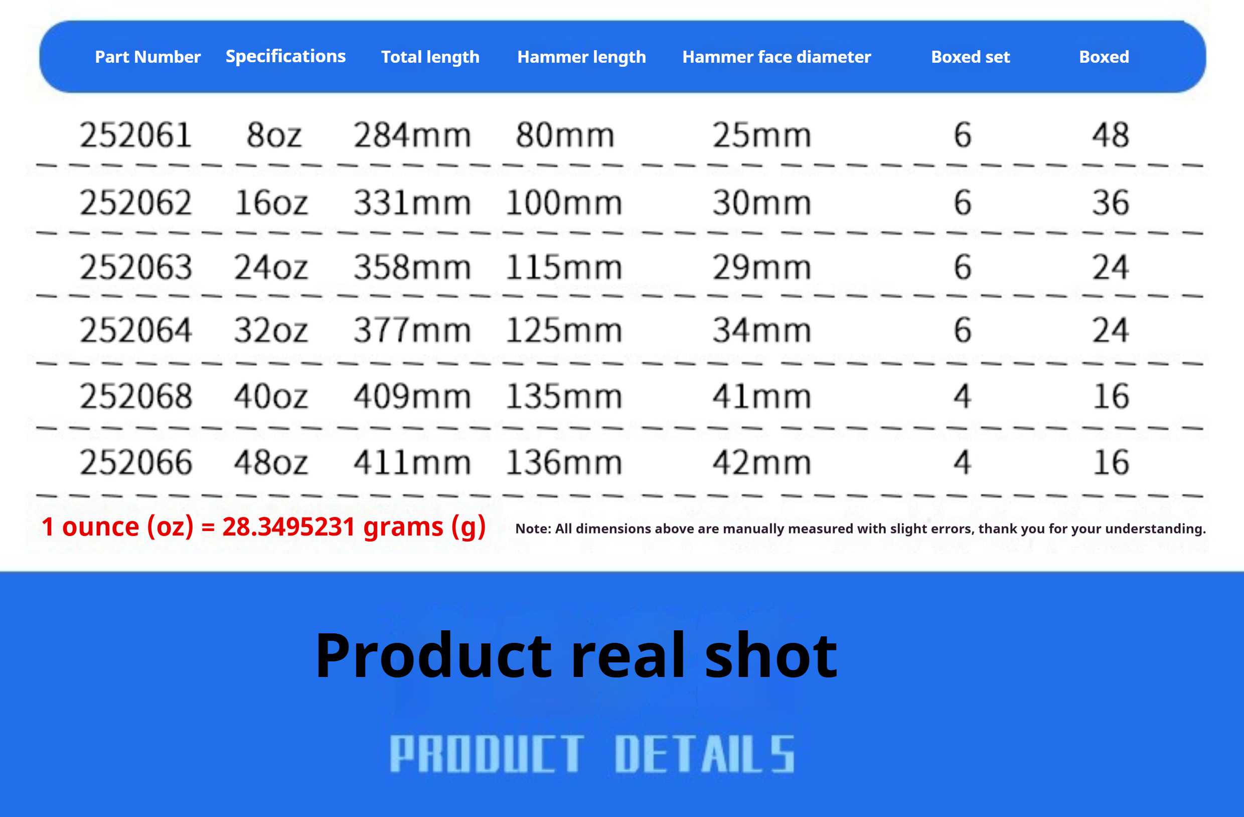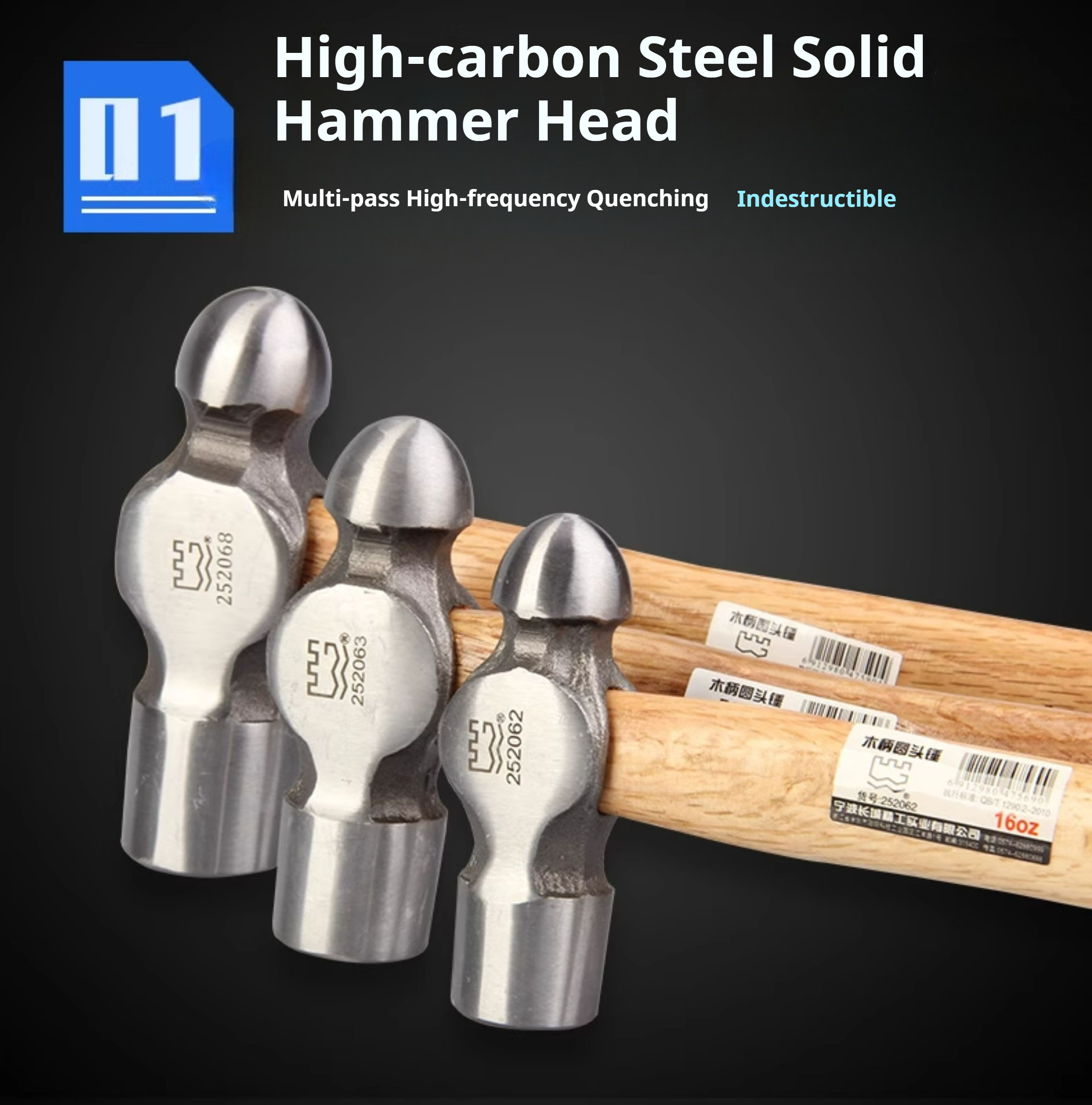 Packing list:6Hammer with Pure Steel Head and Wooden Handle, Round-Head Industrial-Grade Hand Hammer Tool, 1/2/3 Pounds