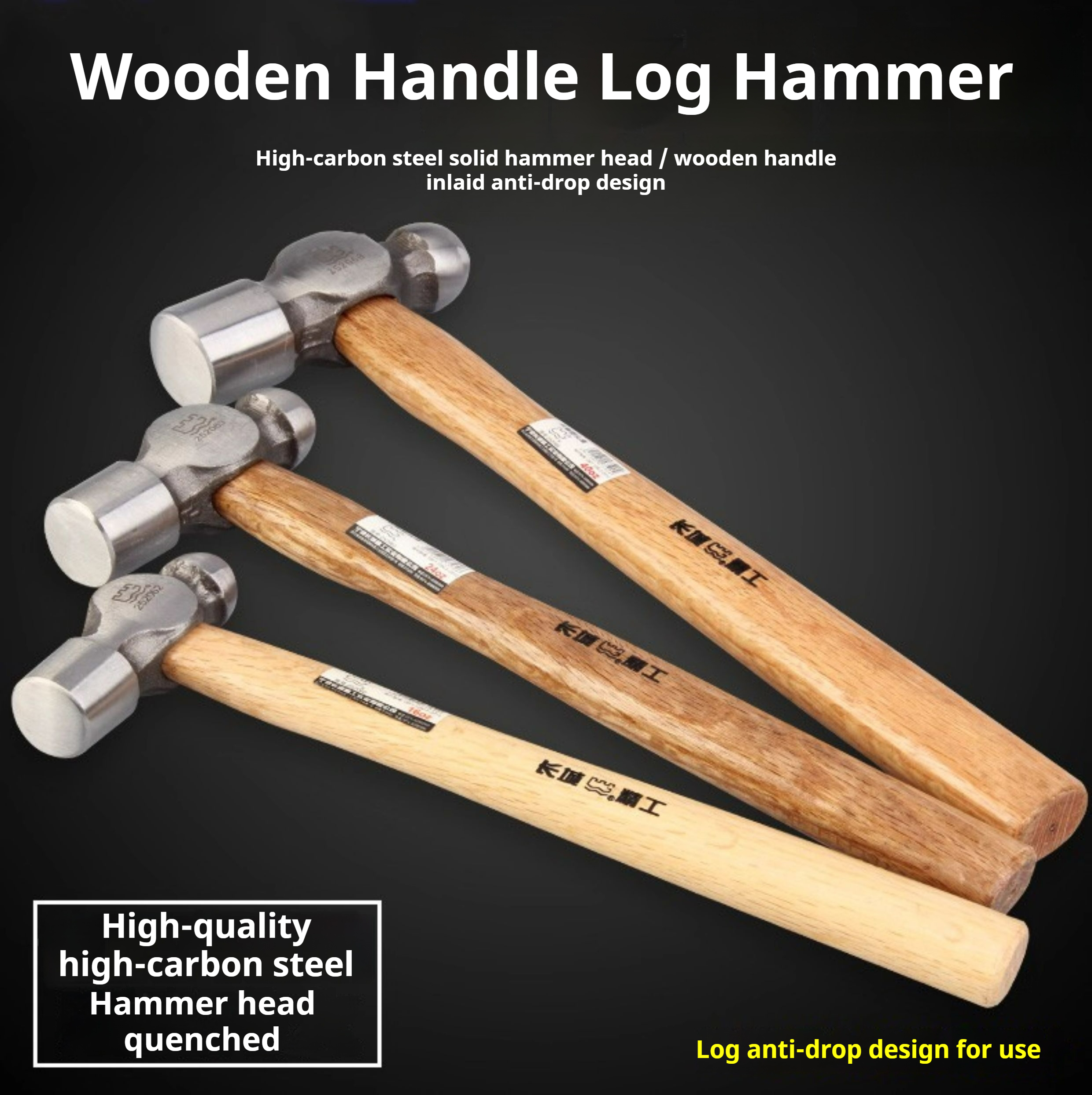 Hammer with Pure Steel Head and Wooden Handle, Round-Head Industrial-Grade Hand Hammer Tool, 1/2/3 Pounds