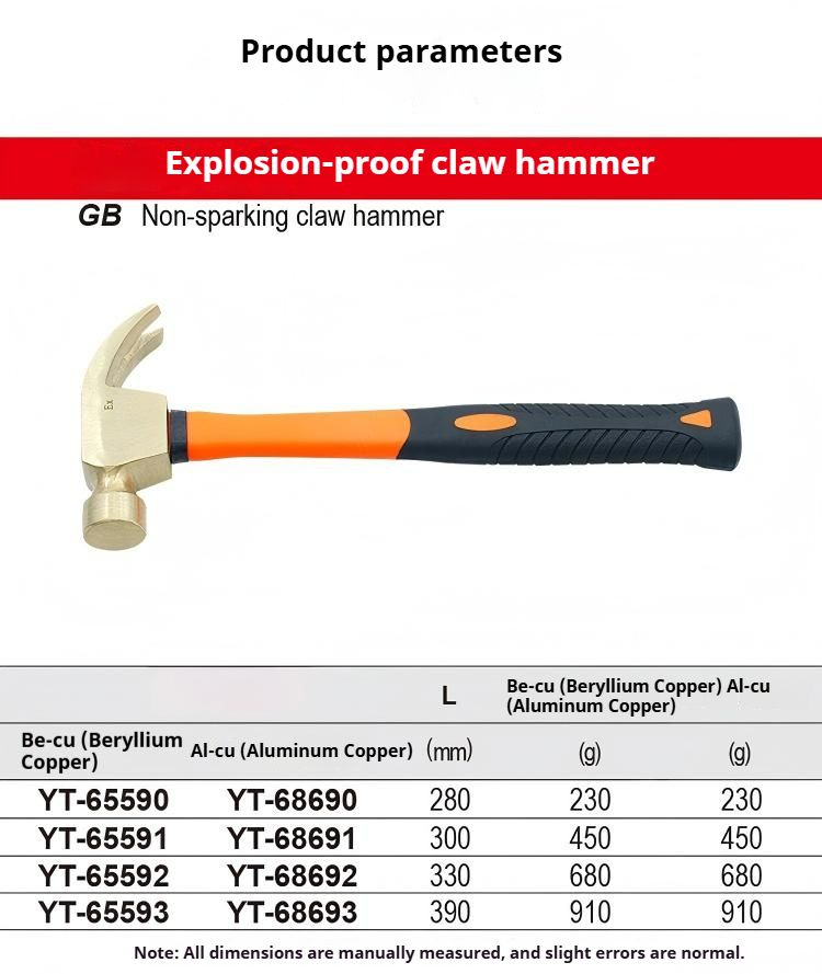 Packing list:1Explosion-proof Horn Hammer Hand Hammer Small Hammer Spark-Free Anti-Static Hammer