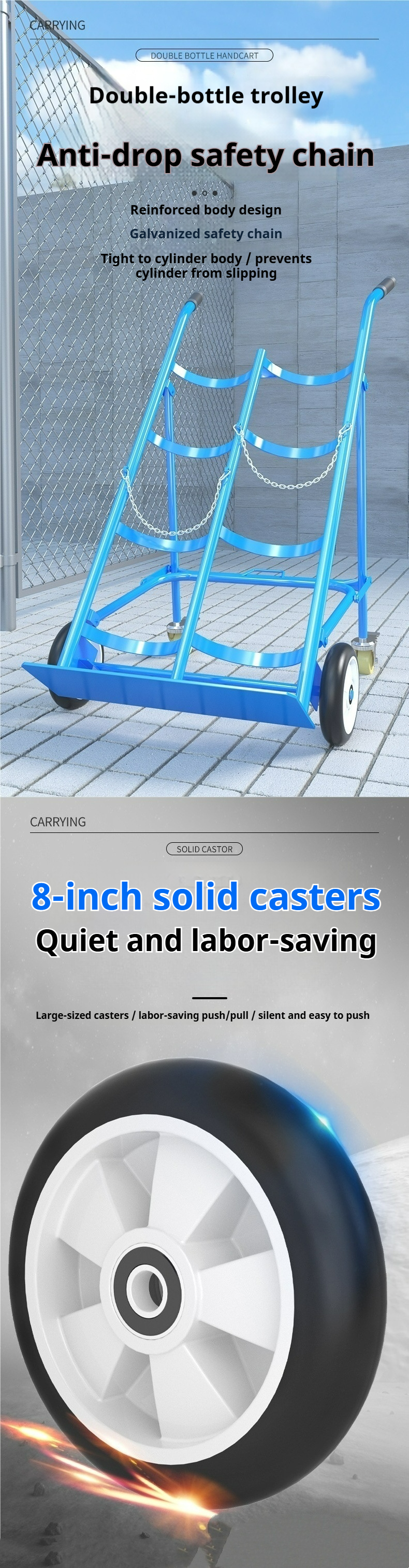 Product name:Reinforced Heavy-Duty Cylinder Trolley for Oxygen and Acetylene Cylinders Transportation Tool Cart with Protective Cover and Brakes