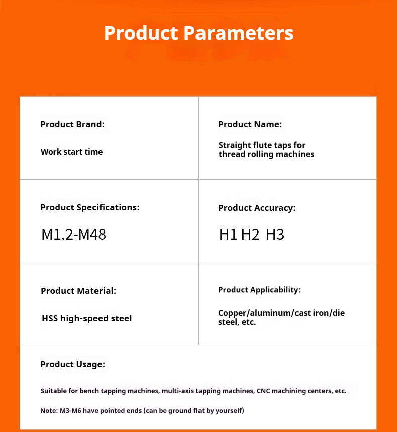 Product name:Machine Taps Coarse-Thread Taps Straight Flute Taps HSS High-Speed Steel Fine-Thread Taps M1.6-36