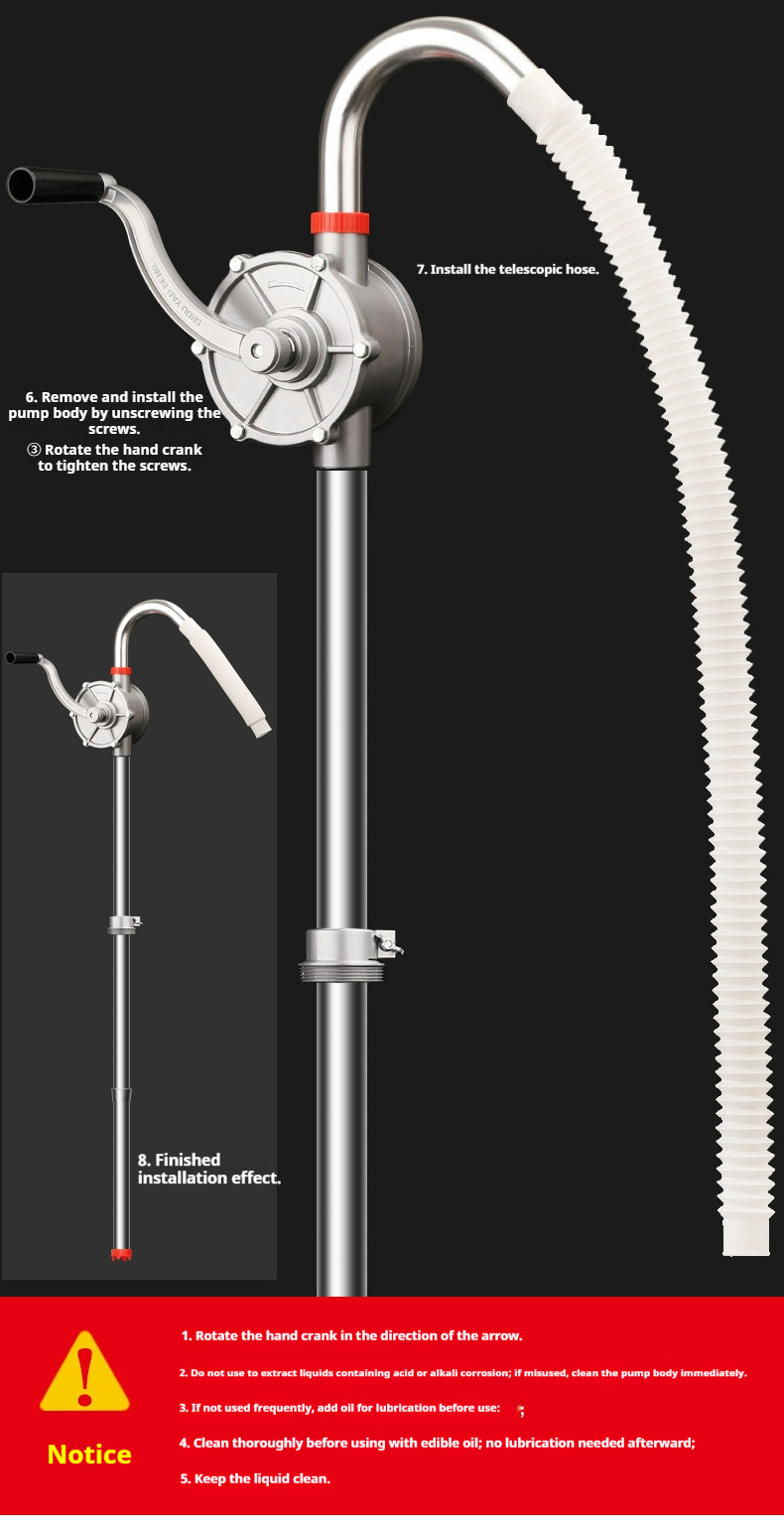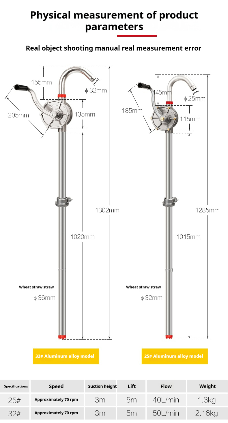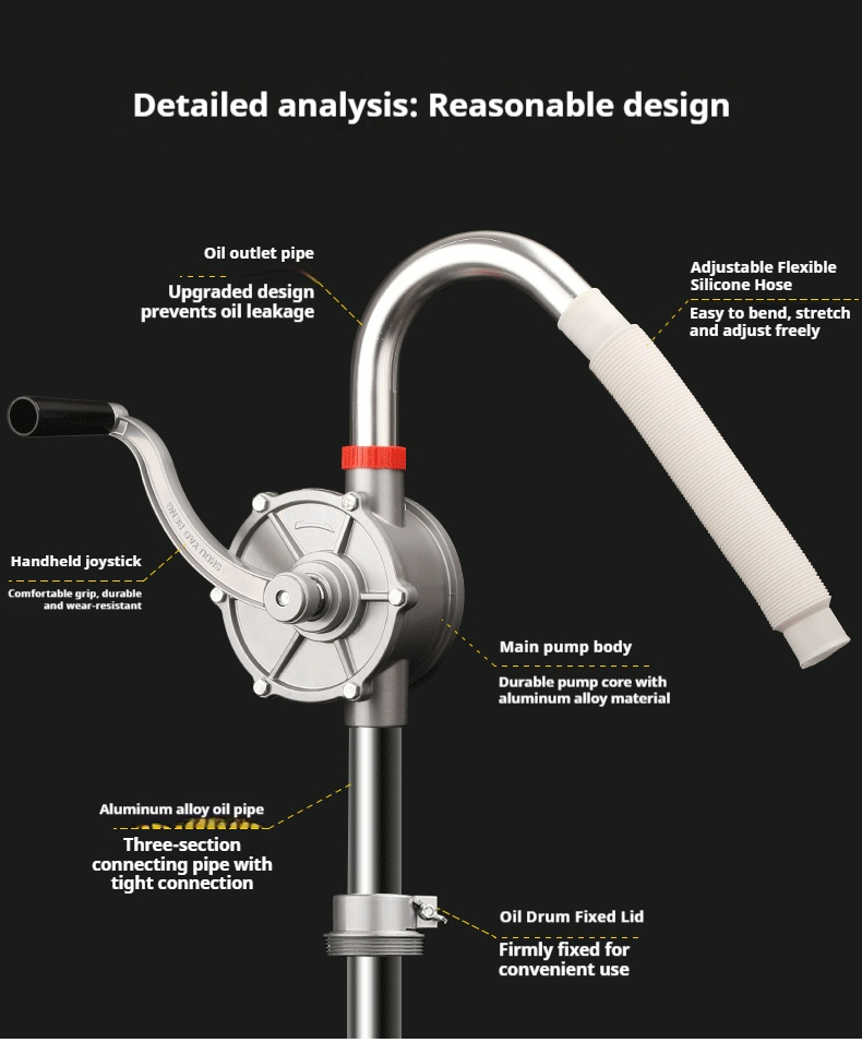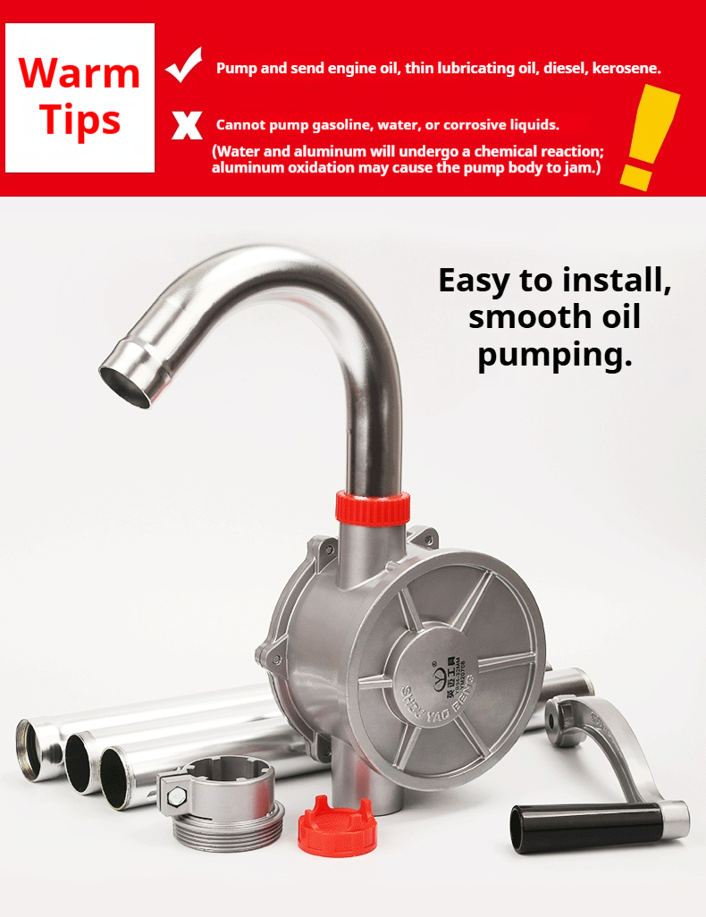 Product name:Manual Oil Pump for Oil Drums Hand-Cranked Oil Suction Hose for Cars and Home Use Aluminum Alloy Oil Pump Self-Priming Hand-Cranked Oil Pump