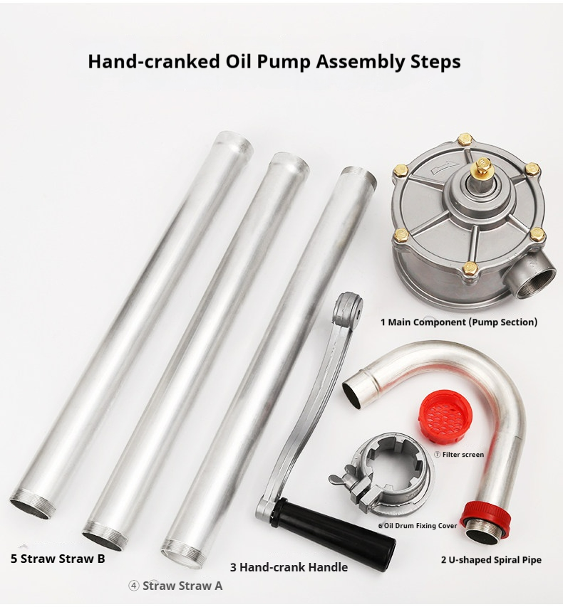 Packing list:1Manual Oil Pump for Oil Drums Hand-Cranked Oil Suction Hose for Cars and Home Use Aluminum Alloy Oil Pump Self-Priming Hand-Cranked Oil Pump