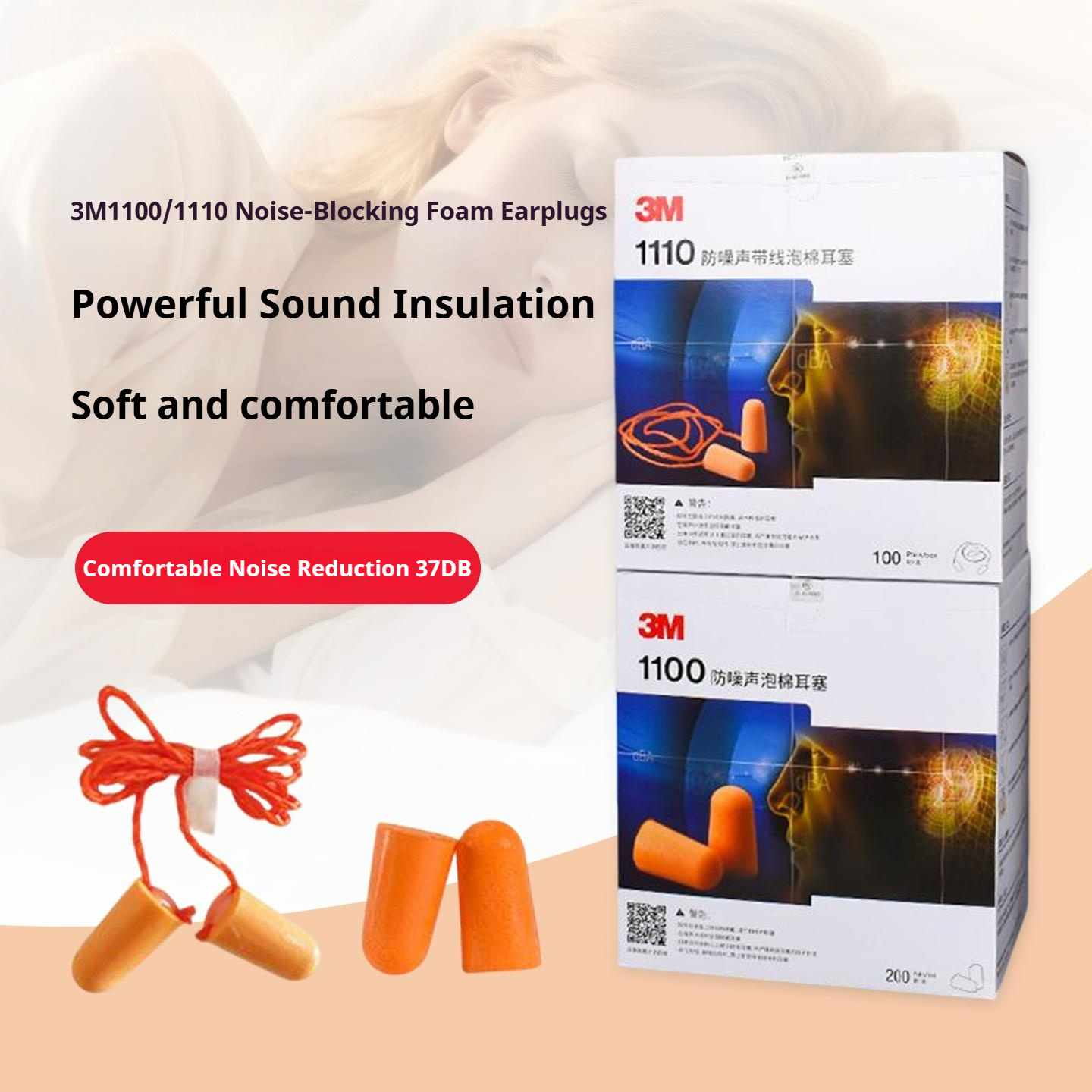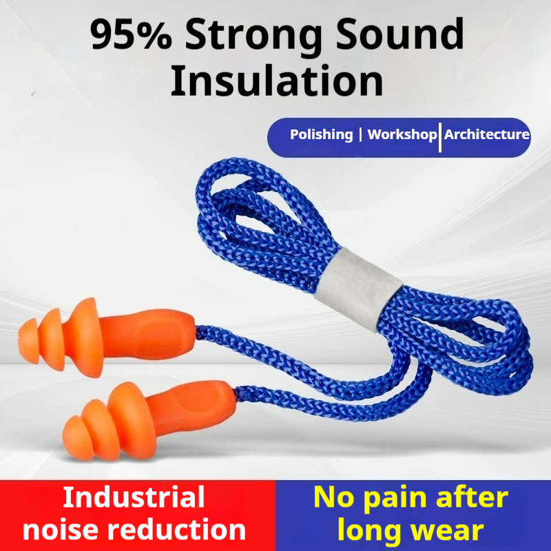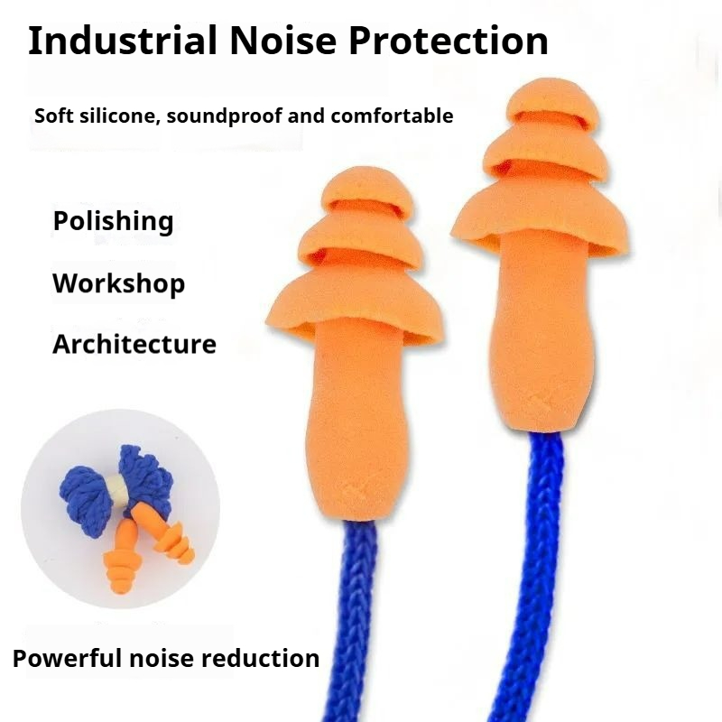 Noise-Canceling Earplugs with Wired Connection Sleep, Swimming, Work, and Machinery Noise Reduction Earplugs Factory Workshop-Specific Soft Anti-Noise Earplugs with Anti-Loss Design