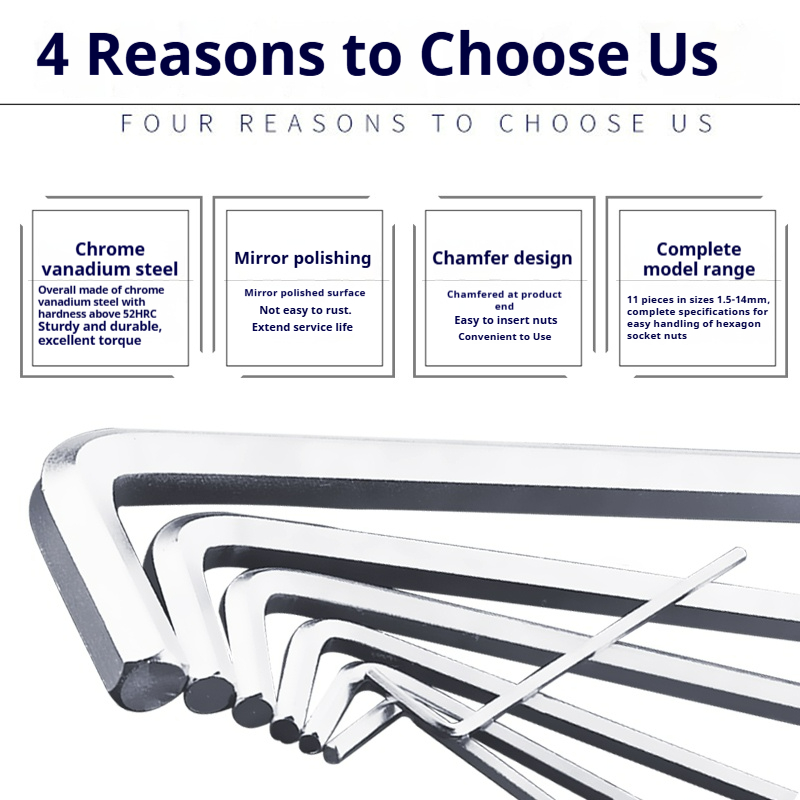Standard Hex Key Socket Set Flat-head Hex Sockets: 3, 4, 5, 6, 7, 8, 10, 12, 14, 17mm Individual L-shaped Hex Key