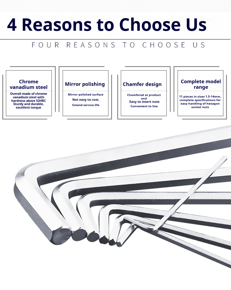 Product name:Standard Hex Key Socket Set Flat-head Hex Sockets: 3, 4, 5, 6, 7, 8, 10, 12, 14, 17mm Individual L-shaped Hex Key