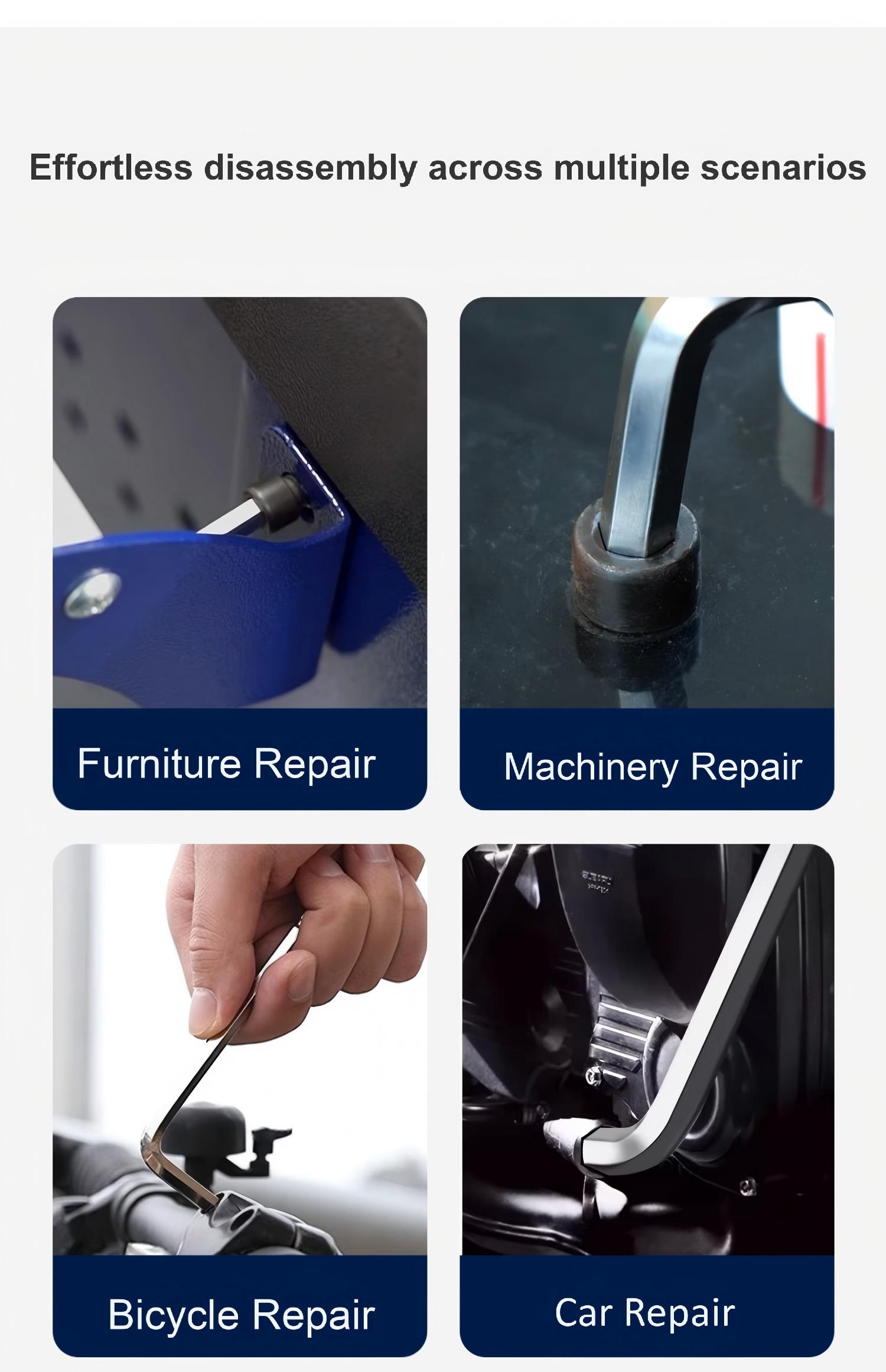 Packing list:1Flat-head Hex Key Set Tool Kit Star-head Hex Screwdriver Set Hex Key Set