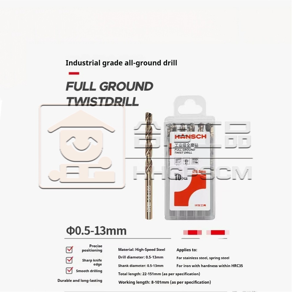 Fully ground twist drill bits, 0.5-8.5mm, specifically designed for stainless steel and high-hardness steel drilling