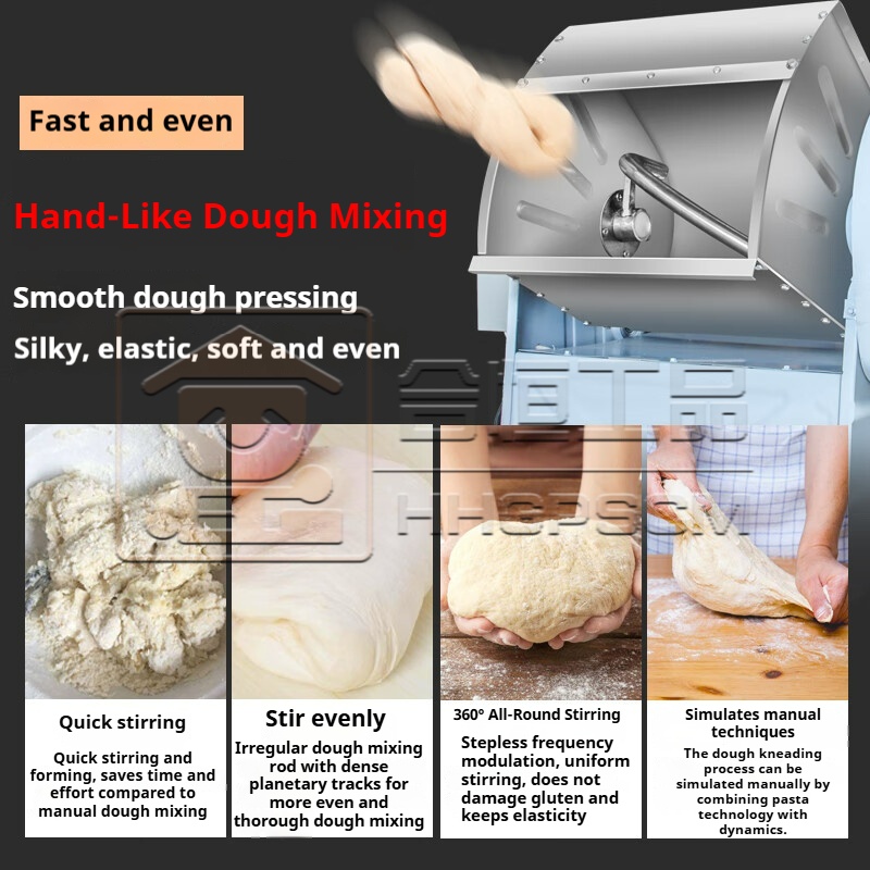 Commercial Dough Mixer for Cafeterias, Restaurants, and Steamed Bun Kitchens Flour Mixer, Dough Kneader, Stainless Steel Dough Mixer