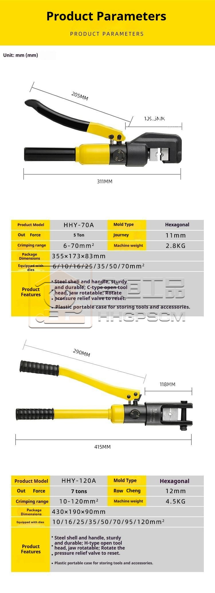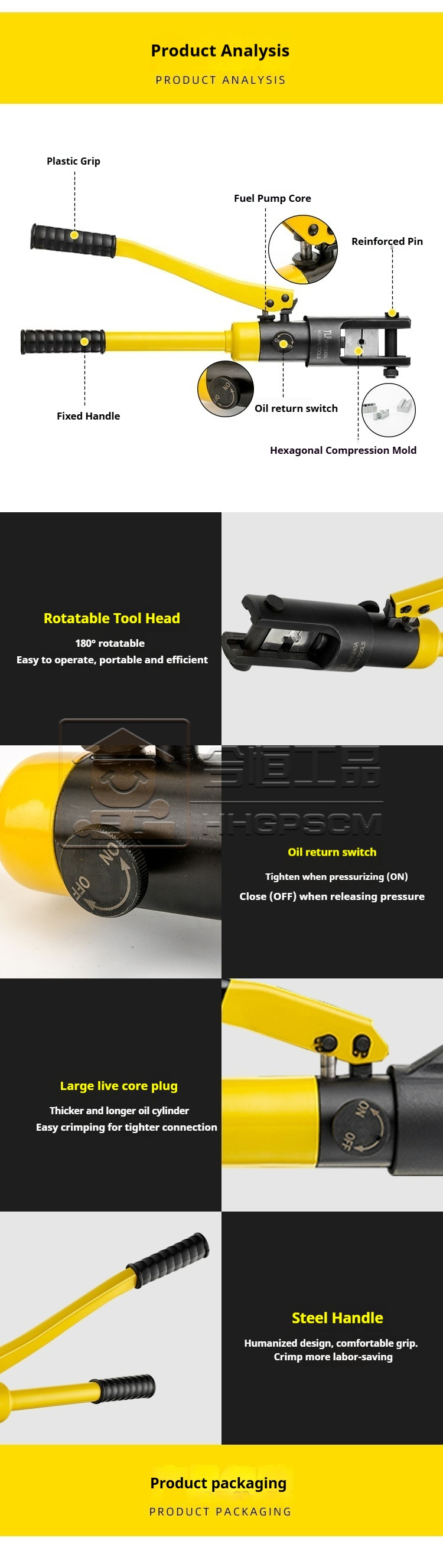 Packing list:1Hydraulic Crimping Pliers Tool Manual Hydraulic Crimping Pliers Terminal Crimping Pliers Electrician's Specialized YQK-70 Hydraulic Crimping Pliers