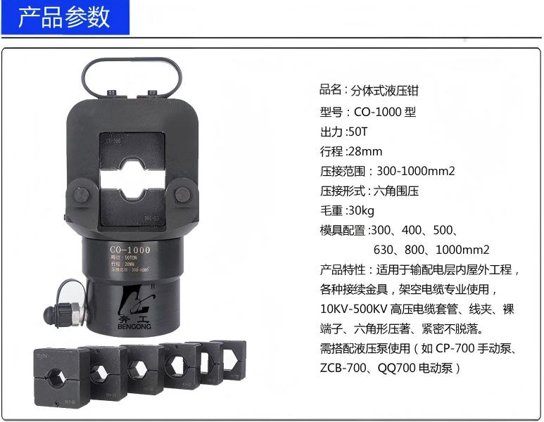 Product name:CO-1000 Split-Type Hydraulic Crimping Tool, Wire Crimping Tool, Cable Crimping Tool 300-1000