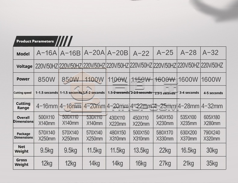 Packing list:1Compact Handheld Rebar Cutter, Portable Rebar Cutter, Hydraulic Shears, Round Bar Cutter, Rebar Cutter