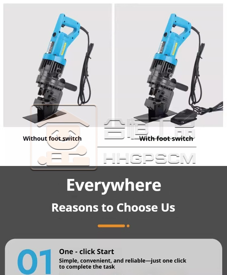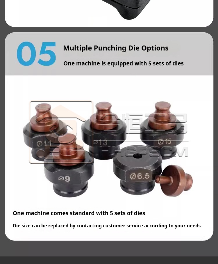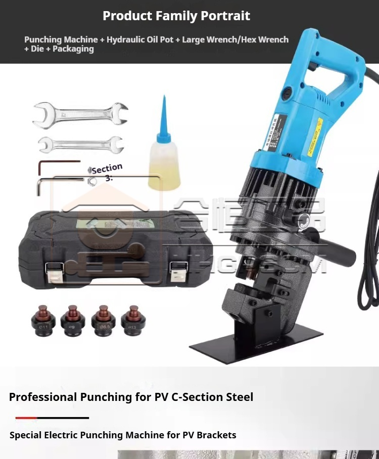 Packing list:1Portable Punching Machine for Angle Iron, Channel Steel, and Small-Sized Channel Steel; Stainless Steel Solar Panel Punching Tool; Electric Hydraulic Punching Machine
