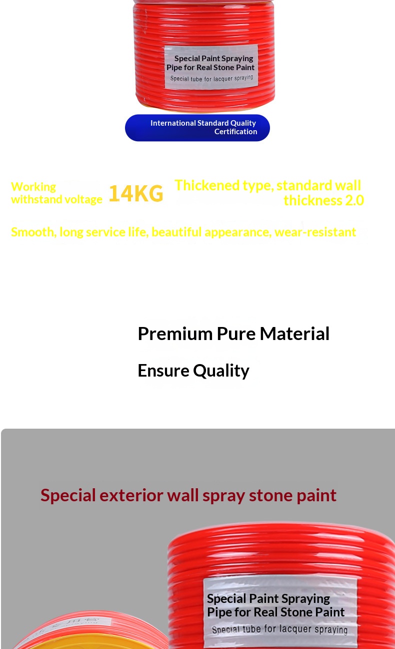 Packing list:1Explosion-proof air hose for exterior wall spraying with real stone paint Corrosion-resistant, acid/alkali-resistant, aging-resistant high-pressure explosion-proof hose for air compressors