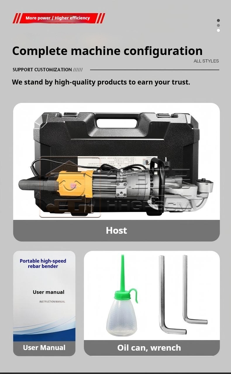 Packing list:1HRB-25 Handheld Rebar Bender: Portable Electric Bender and Hydraulic Straightening and Bending Combination Machine