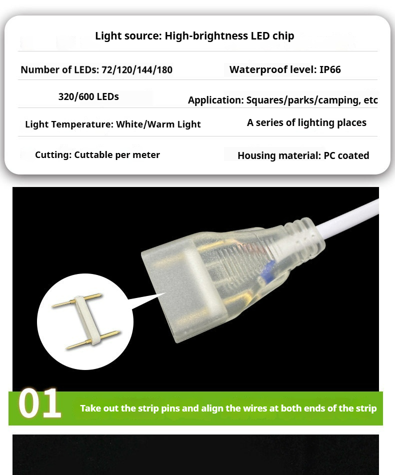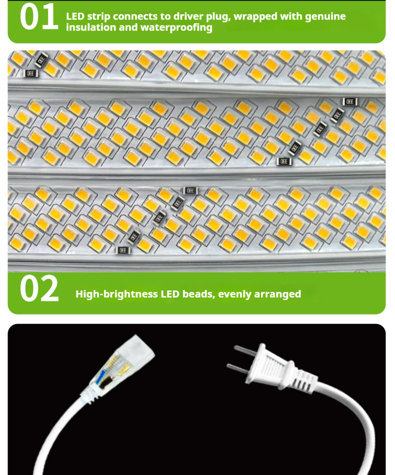 Packing list:1220V High-Voltage LED Strip Light Super Bright for Home Living Rooms, Exterior Walls, Commercial Spaces, Outdoor Courtyards, Waterproof