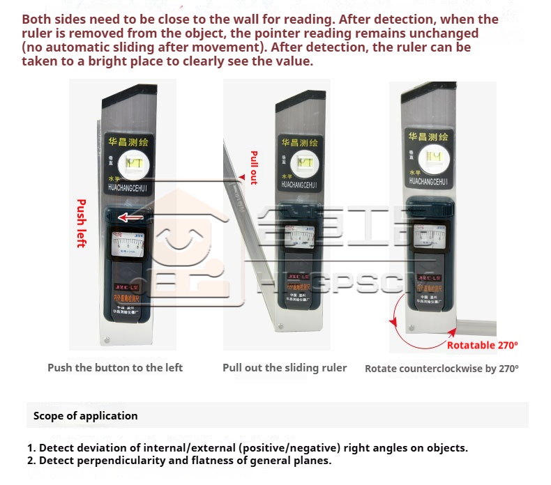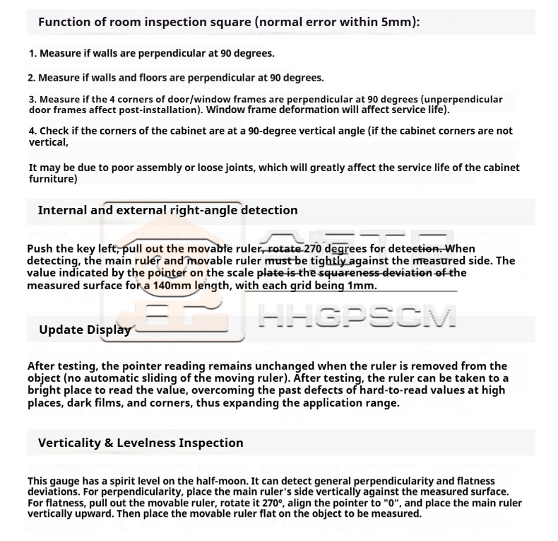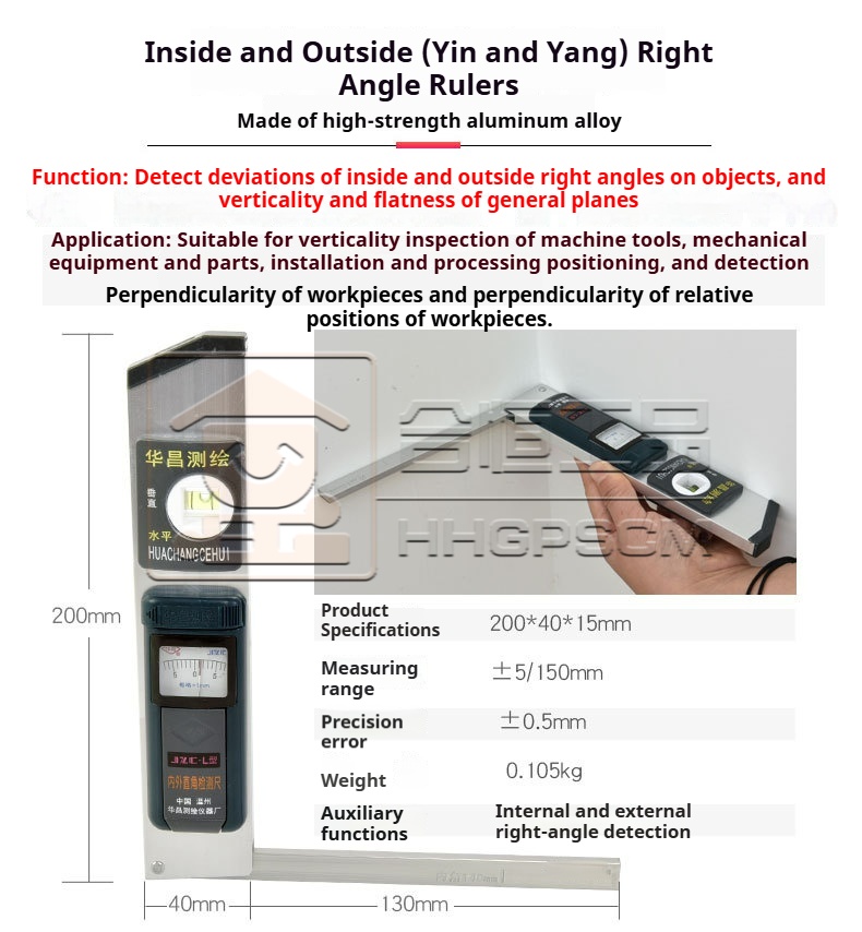 Packing list:1Right angle ruler, inside and outside right angle measuring ruler, inspection tools, angle measuring instrument