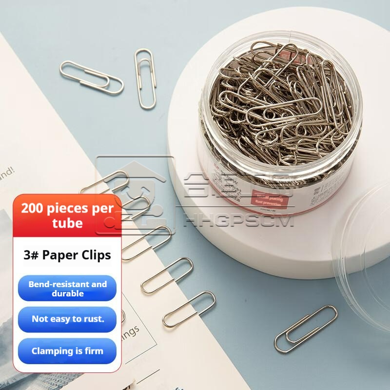 3# Nickel-Plated Paper Clips Rust-Resistant Metal Paper Clips Office Supplies 200 Pieces/Tube ABS91697