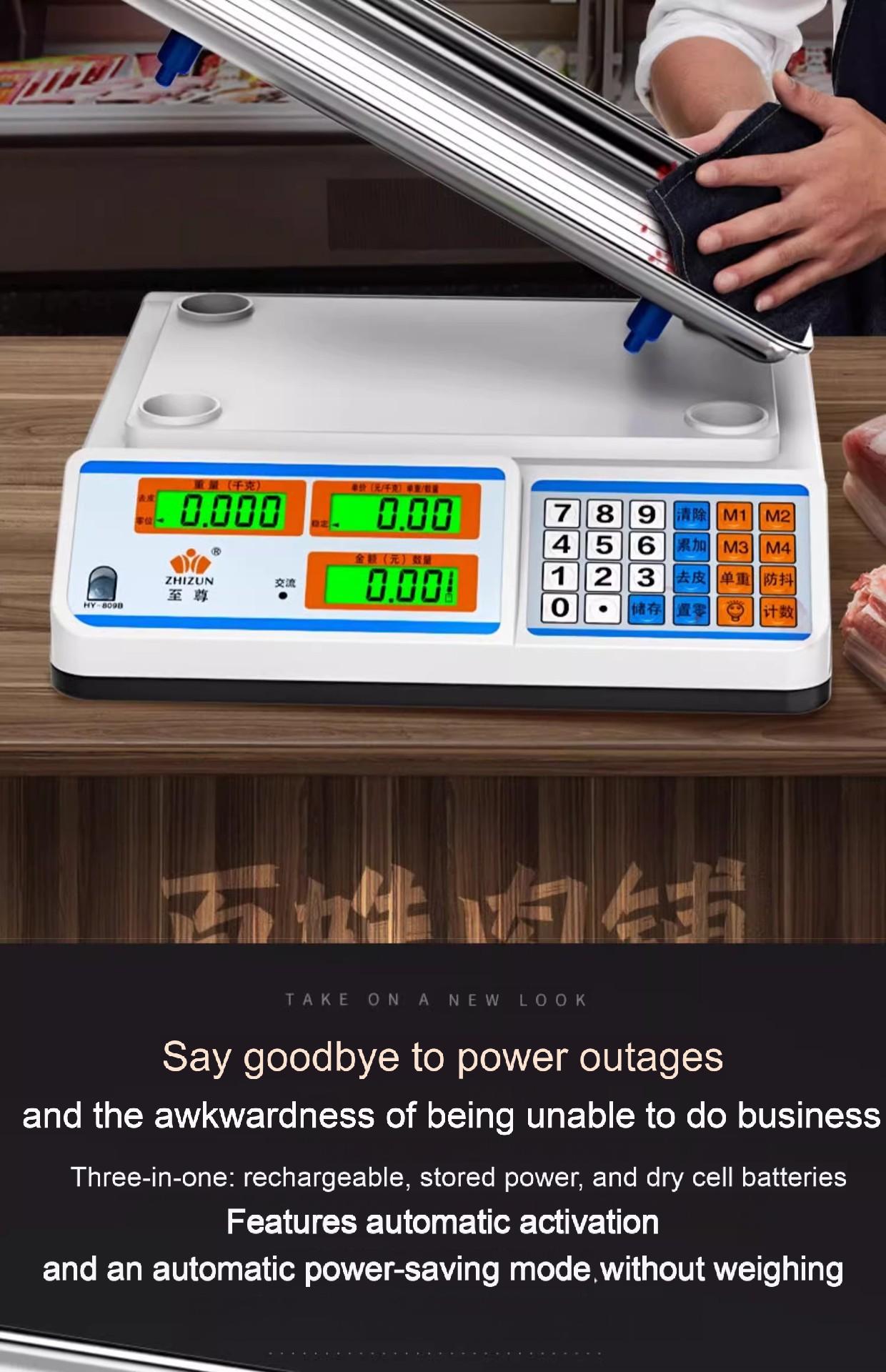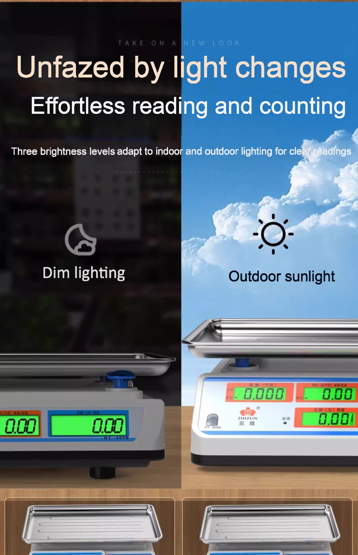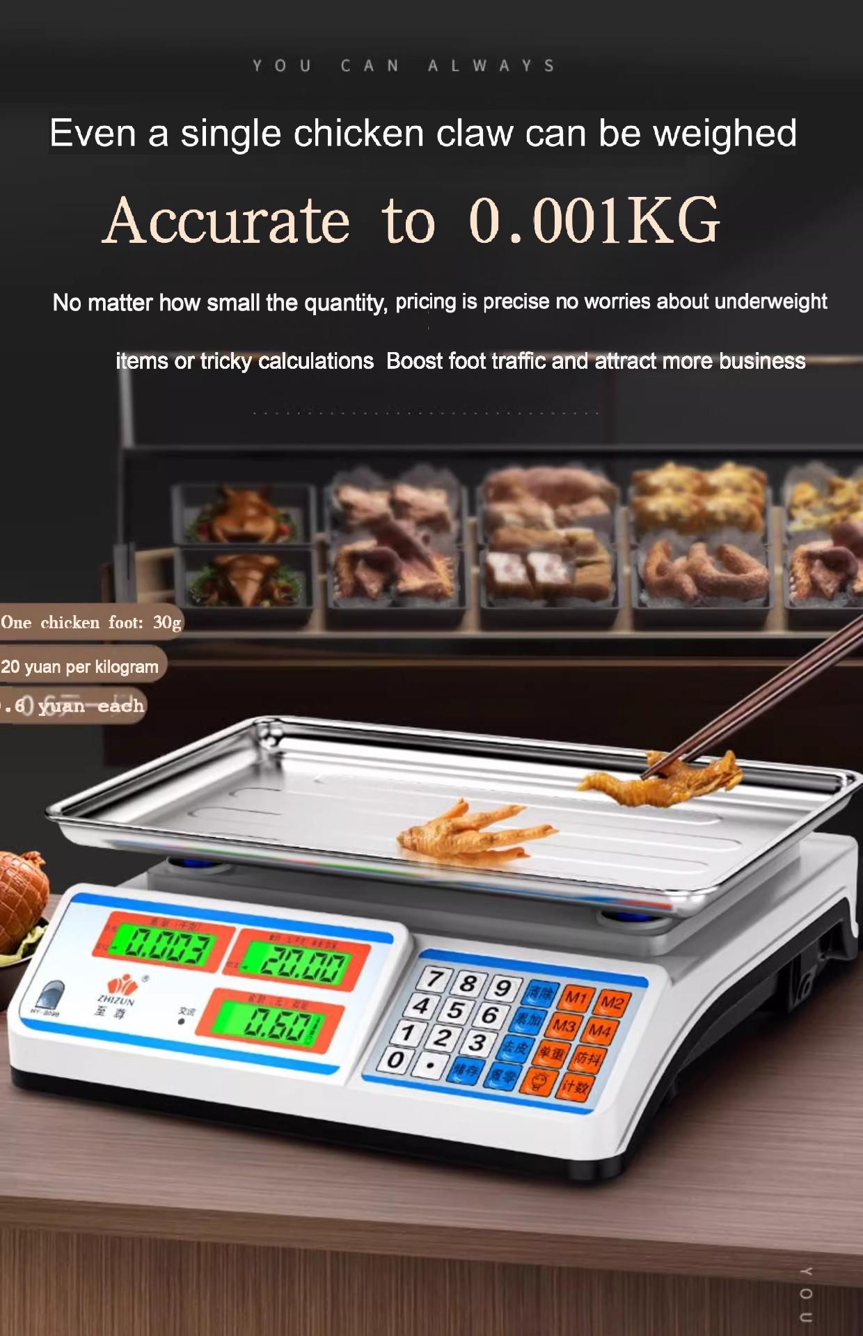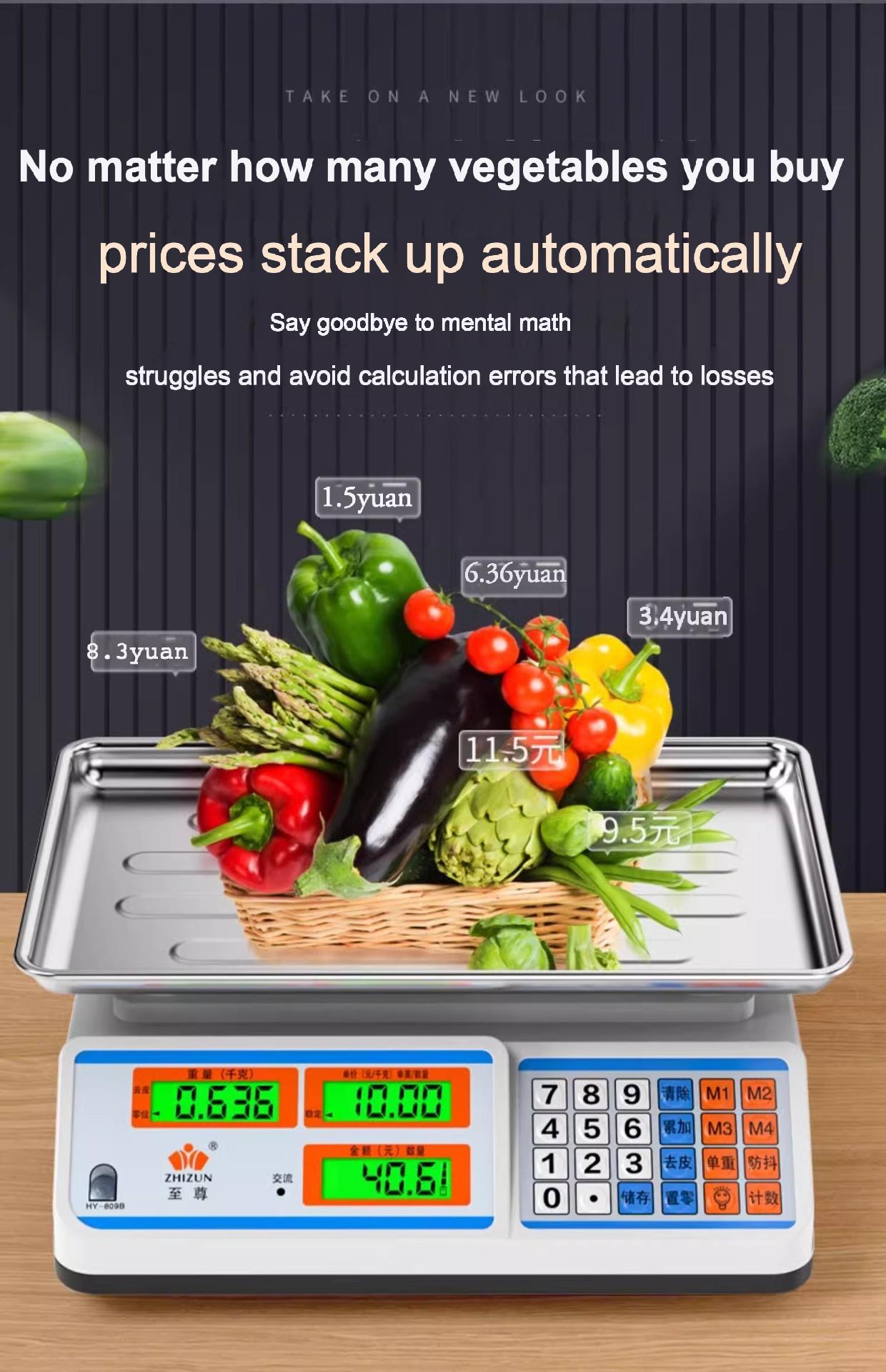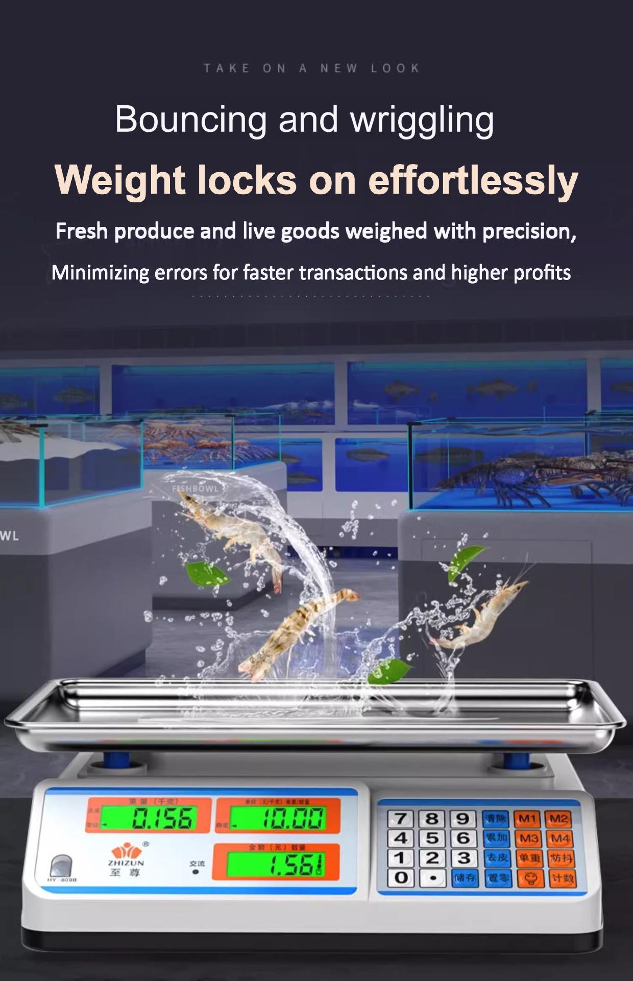 Packing list:1Commercial-grade weighing scale with high-precision counting and weighing Waterproof kilogram scale for vegetable and fruit markets Dual-display design suitable for street vending