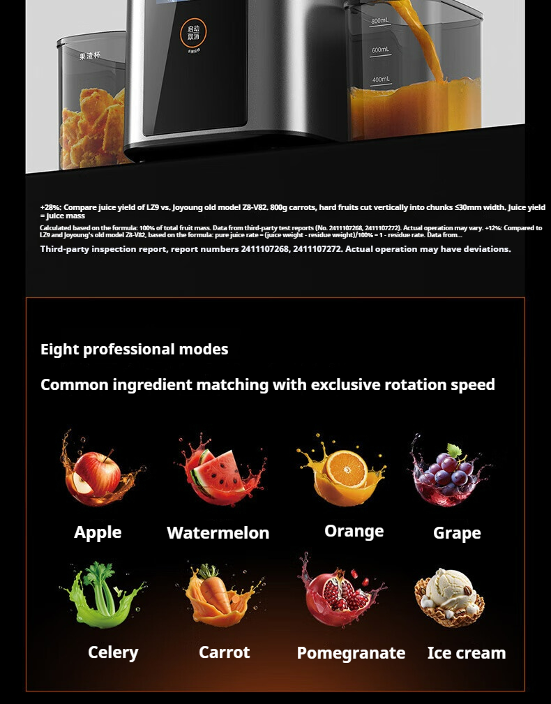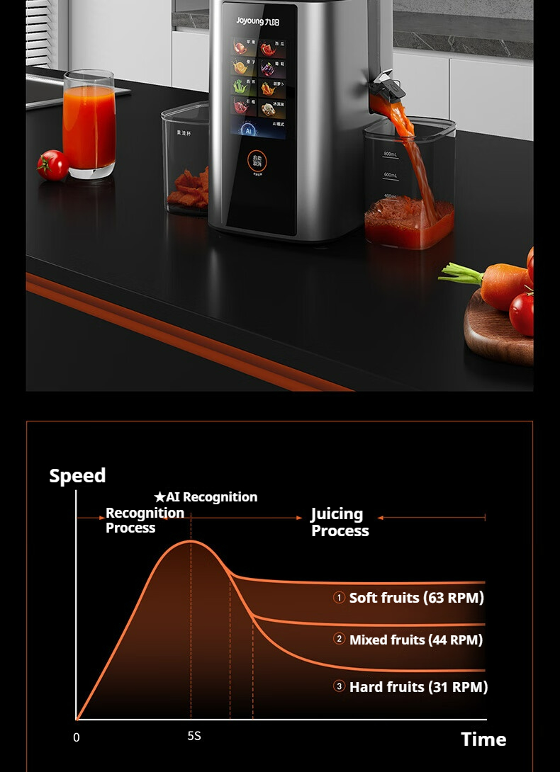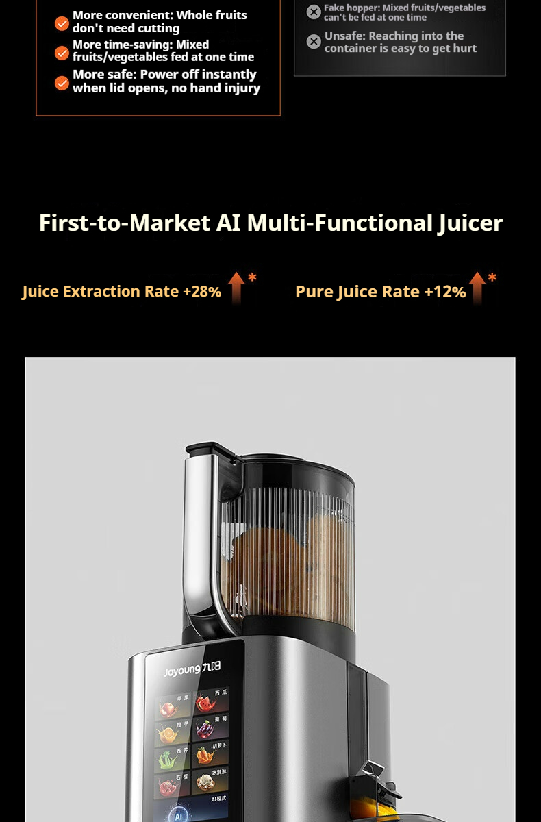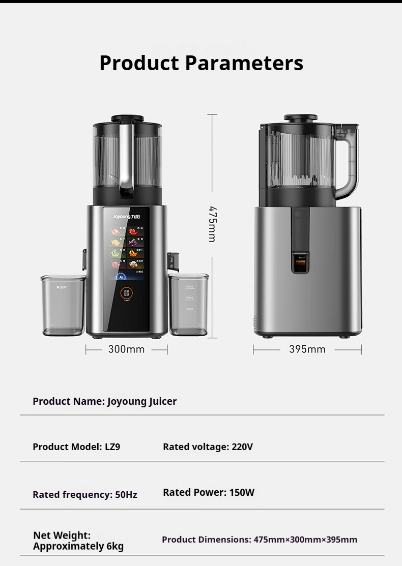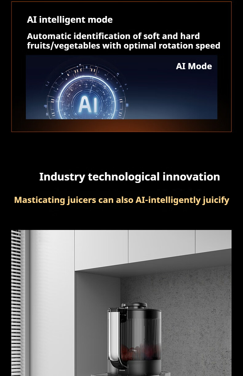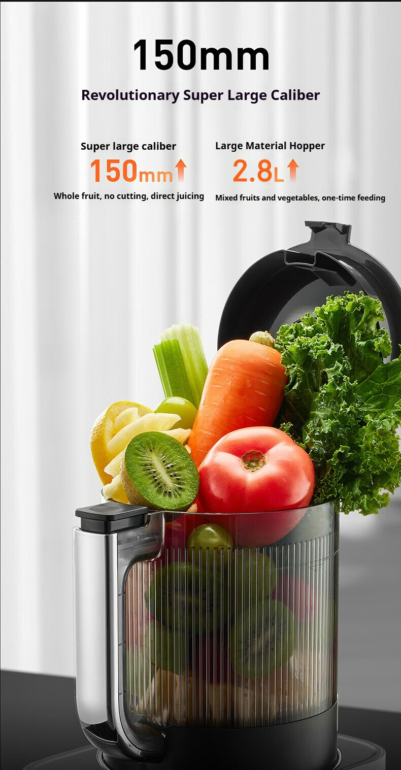 Product name:Juicer AI Smart Commercial Use Pure Juice Extractor Fully Automatic Pulp Separation Premium 150mm Extra-Large Feed Chute Multi-Function Juicer for Fruits and Vegetables
