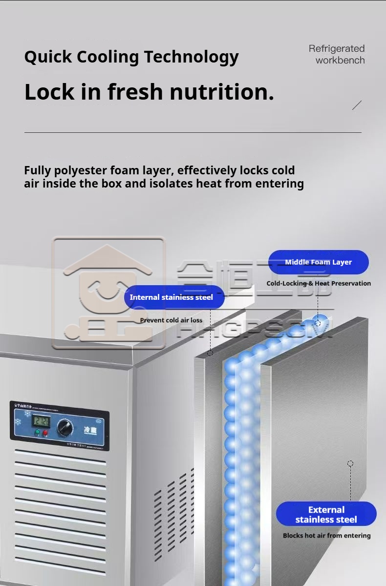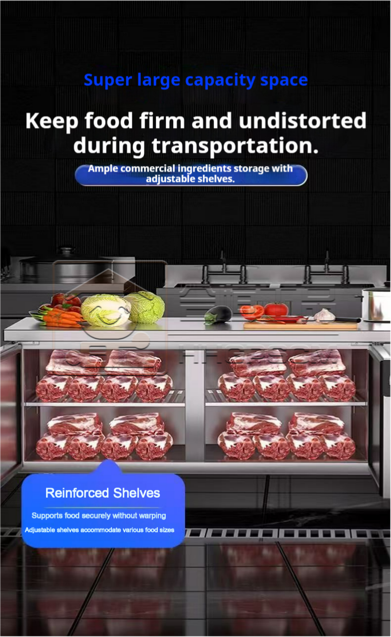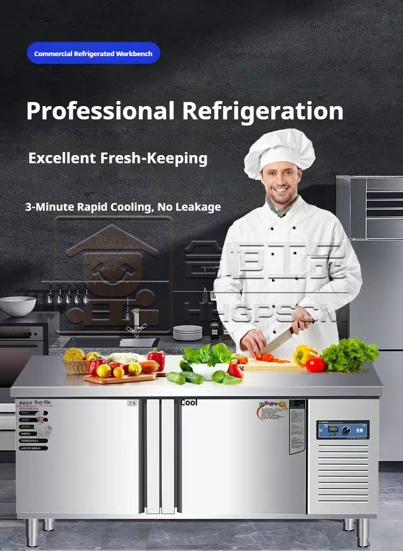 Packing list:1Refrigerated Workstation Kitchen Freezer Cutting Board Commercial Refrigerator Freezer Cabinet Workbench Freshness Preservation Cabinet Cold Storage Cabinet