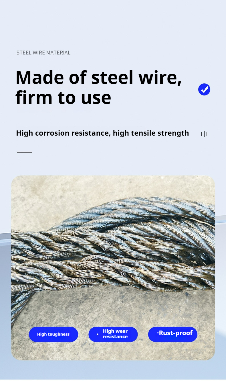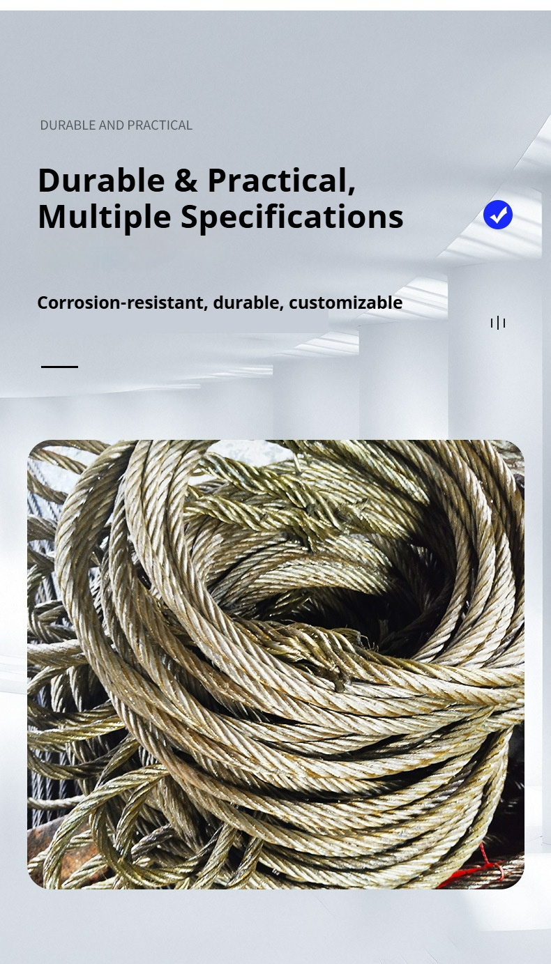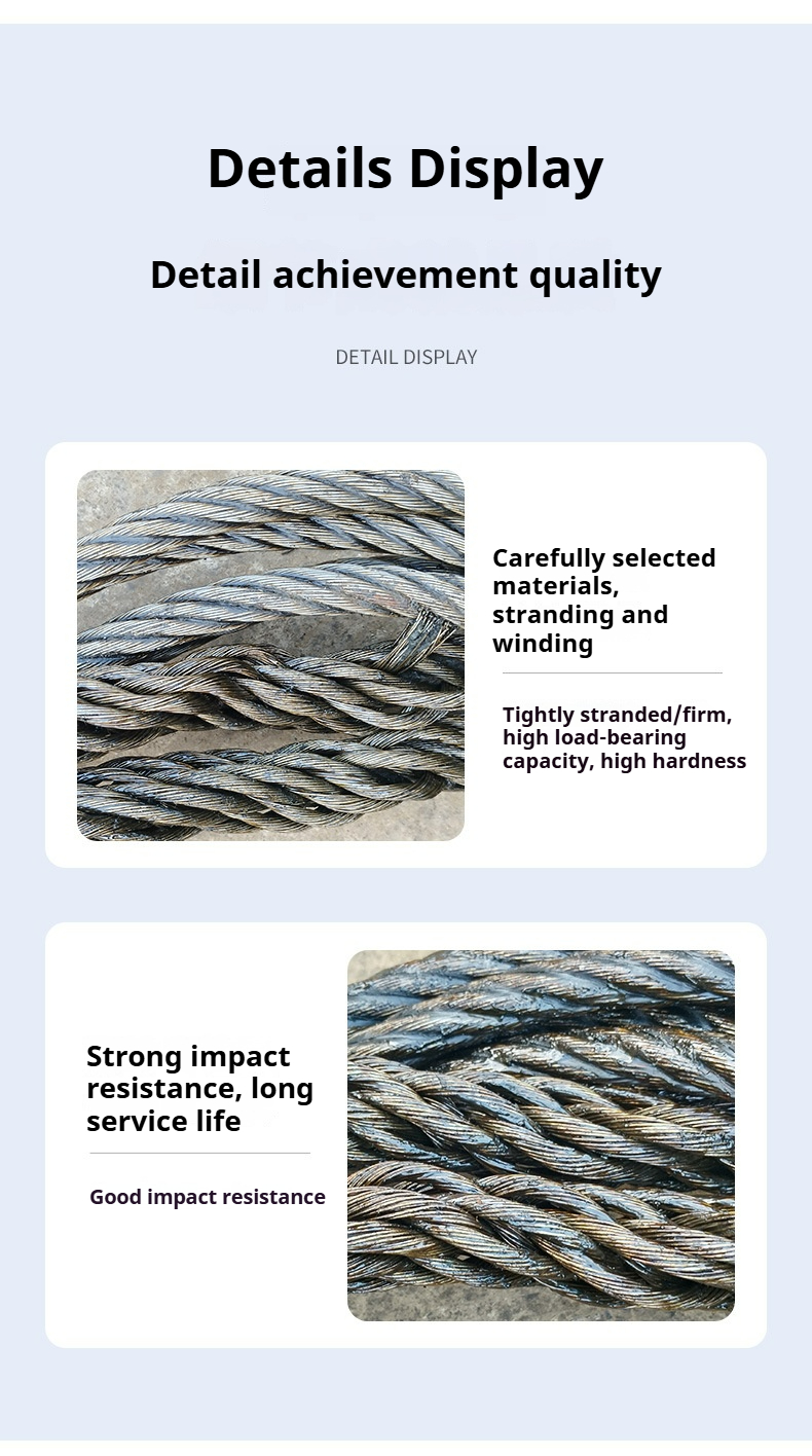 Packing list:1Machine-braided oiled hemp core steel wire rope with standard braided end fittings for lifting slings, available in multiple specifications