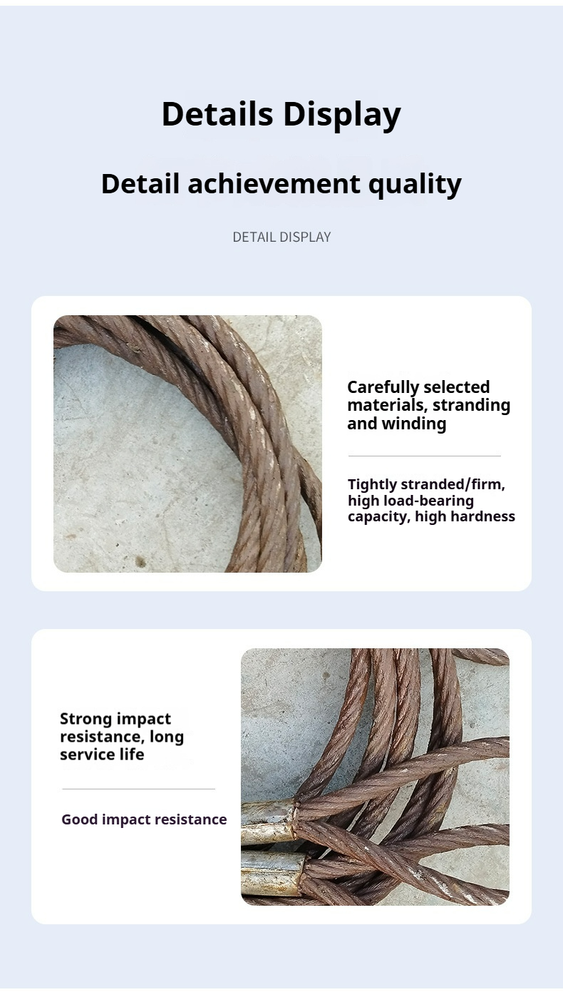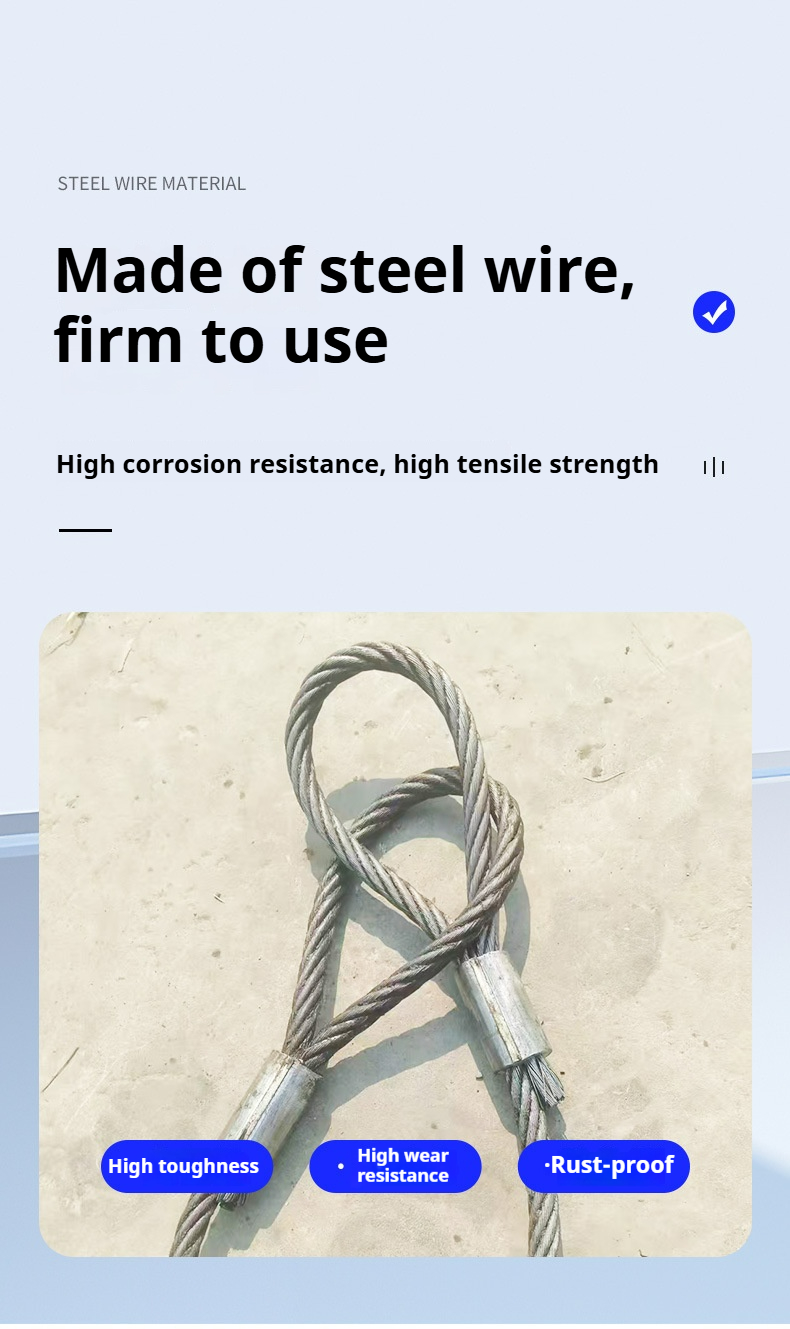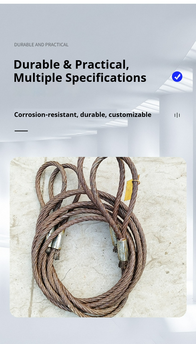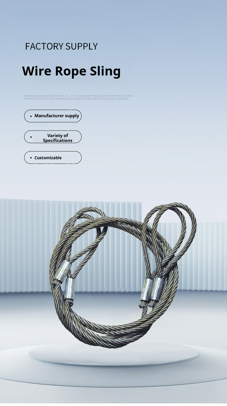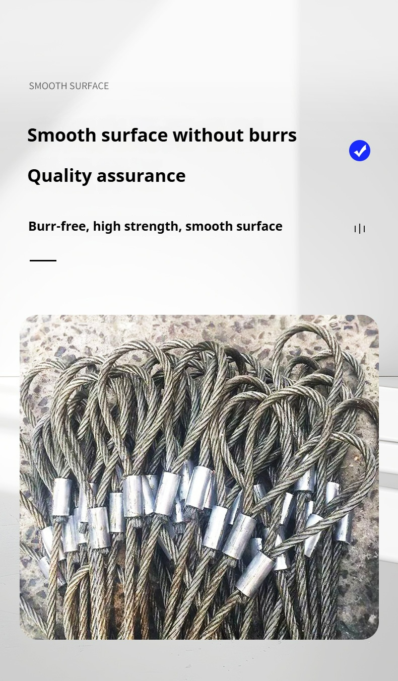 Packing list:1Aluminum-crimped wire rope sleeves Machine-braided wire rope sleeves Standard braided end fittings Tower crane rigging wire rope sleeves