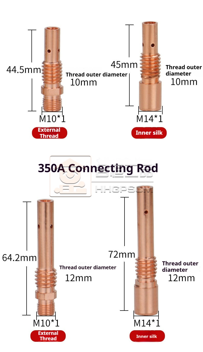 Product name:Panasonic-Style Dual-Protection Welding Connecting Rod European Standard 200A/350A/500A Gas-Shielded Welding Internal/External Threads Copper/Brass Connecting Rod