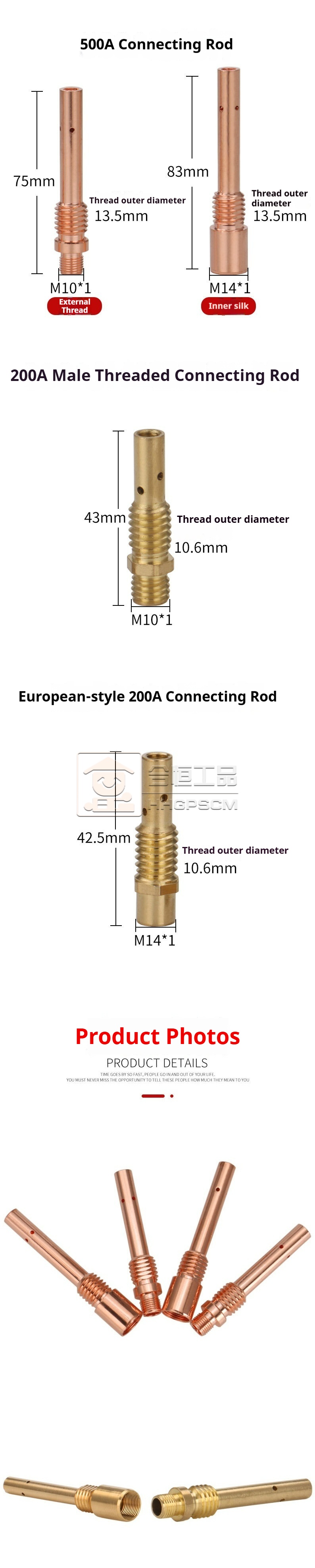 Packing list:1Panasonic-Style Dual-Protection Welding Connecting Rod European Standard 200A/350A/500A Gas-Shielded Welding Internal/External Threads Copper/Brass Connecting Rod