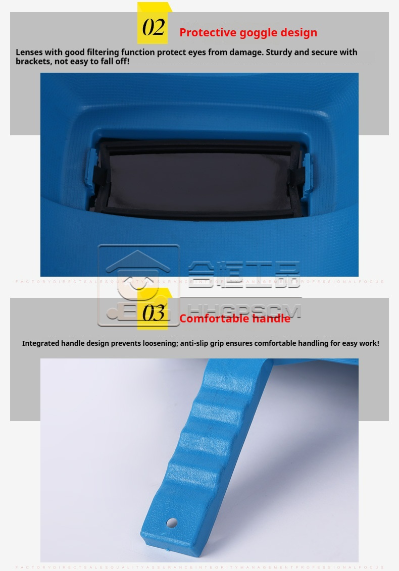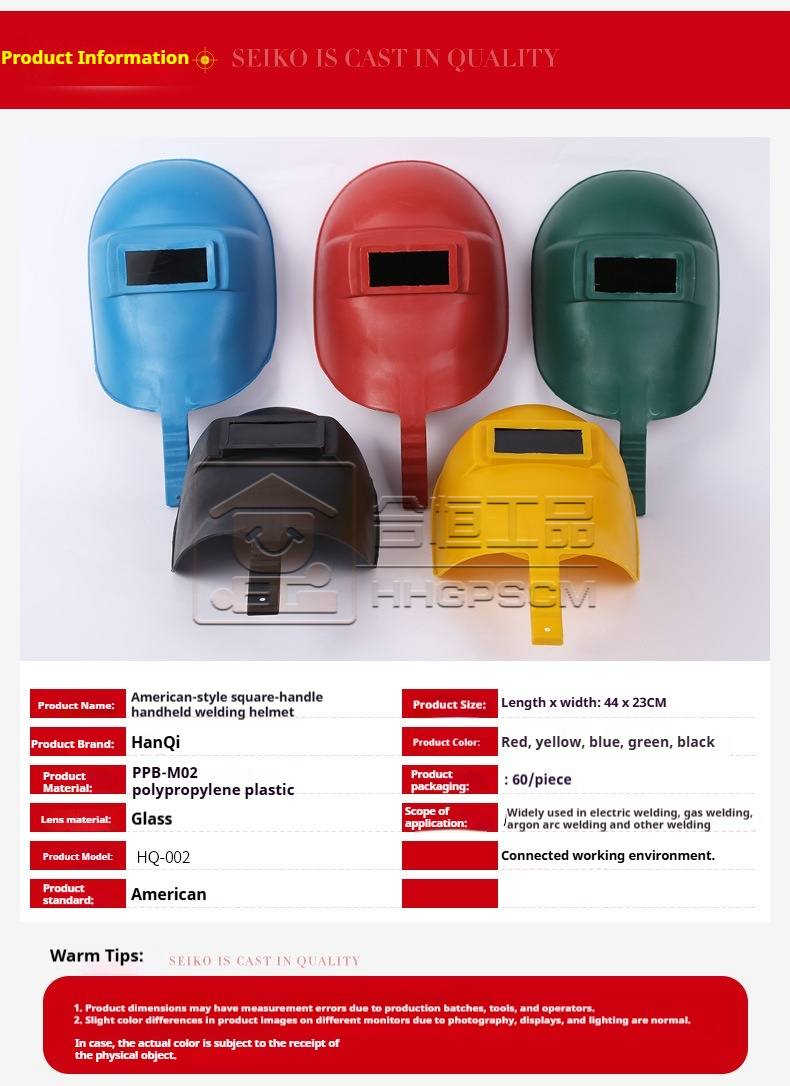 Packing list:1American-Style Square-Handle Handheld Welding Helmet Handheld Welding Helmet Electrical Welding Protective Helmet