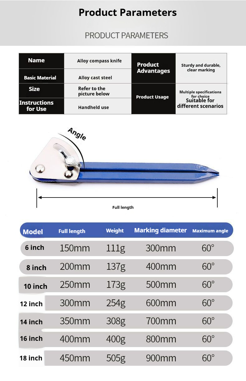 Product name:Drafting Compass for Precision Machinists Industrial-Grade Tungsten Carbide Alloy Large-Size Iron Scribing Tool Woodworking Machinery Marking Essential Drawing Compass