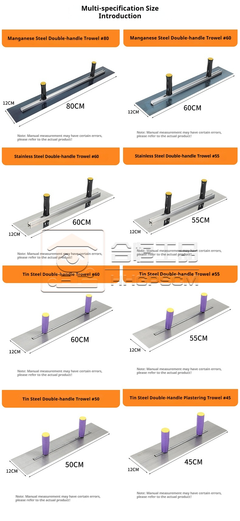 Product name:Double-Handled Blue Steel Large Panel Trowel for Plastering and Skim Coating Heavy-Duty Leveling Tool Stainless Steel & Aluminum Alloy Adjustable Large Panel