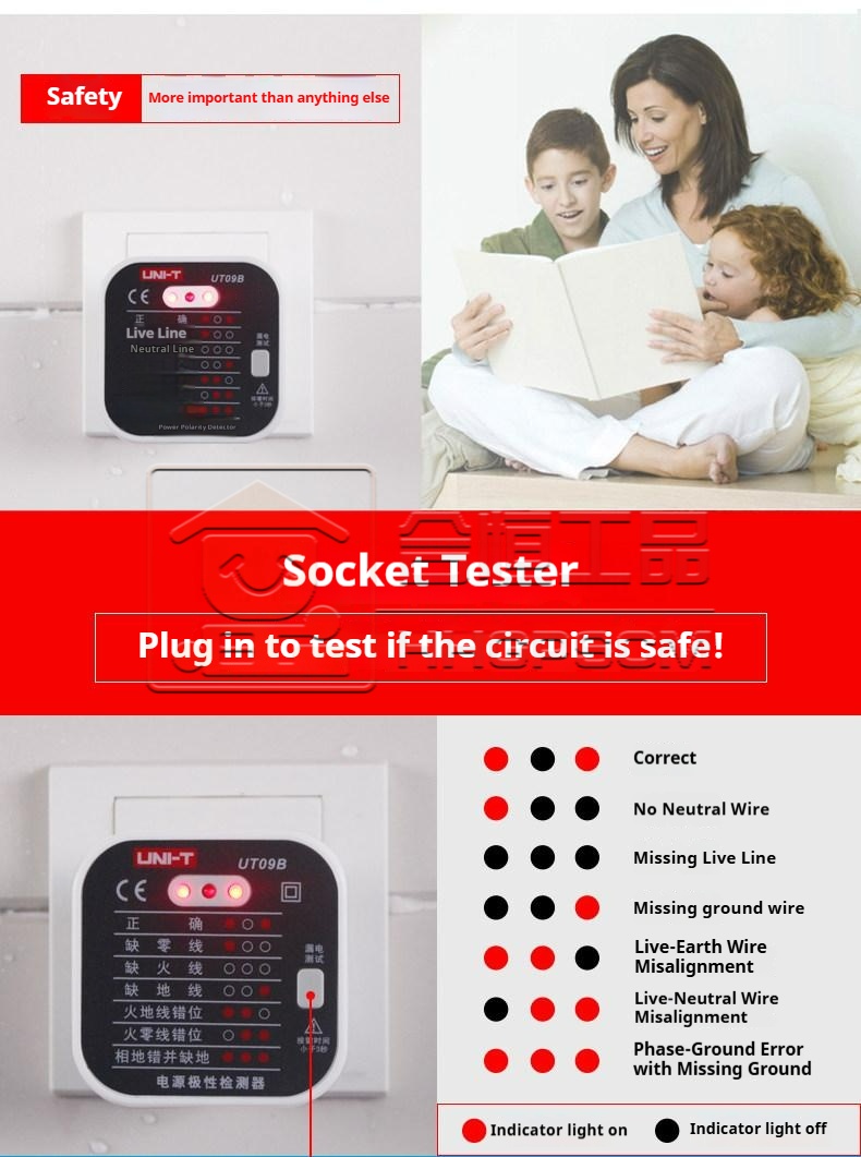 Product name:UT09A/09B Socket Tester: Ground, Neutral, and Live Wire; Plug Polarity Tester; Phase Detection
