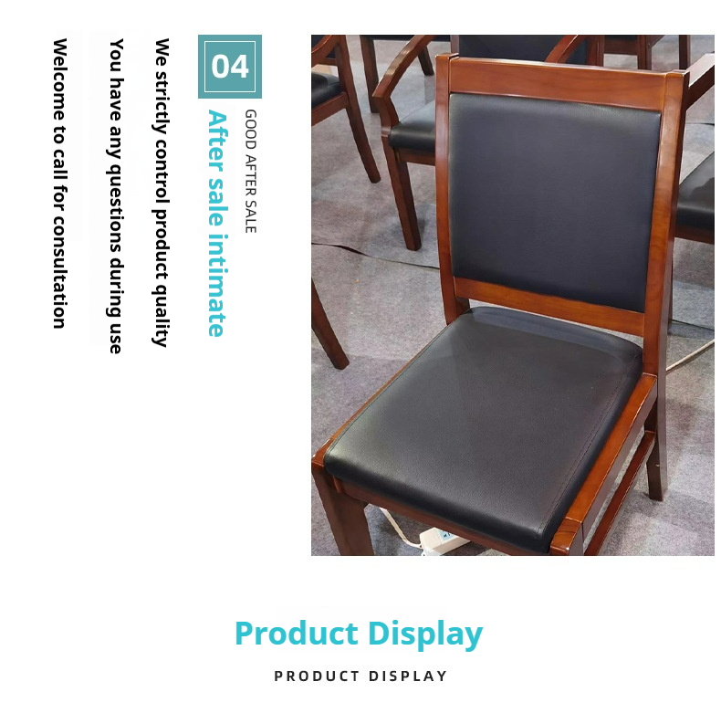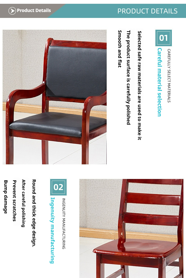Product name:Solid Wood Office Conference Chair Four-Legged Chair Brand Room Mahjong Leather Chair with Armrests Training Staff Chair - Customizable