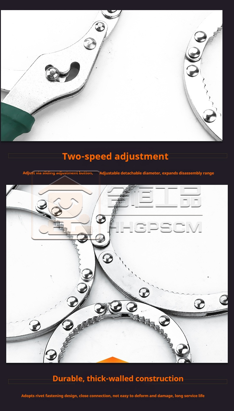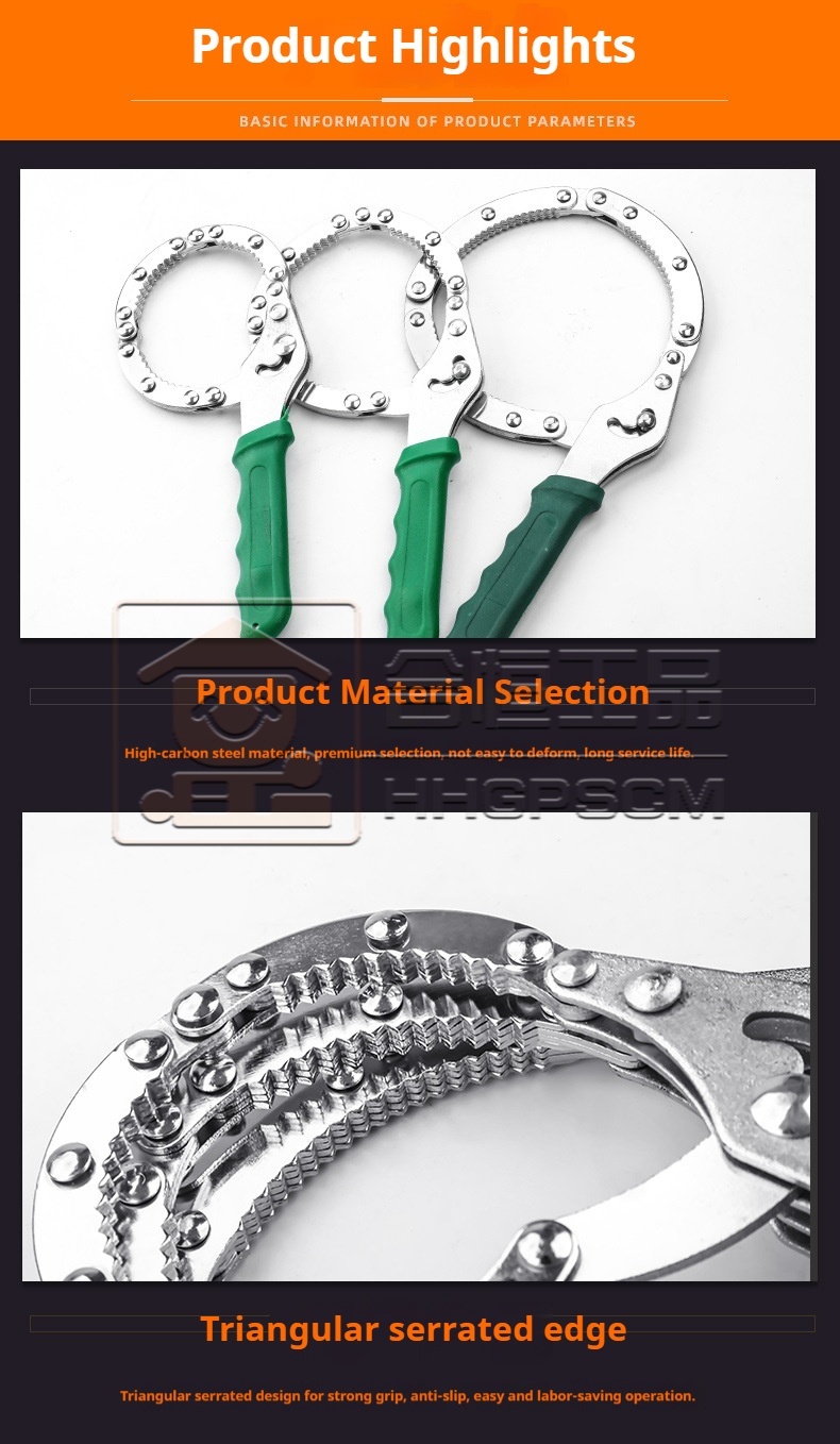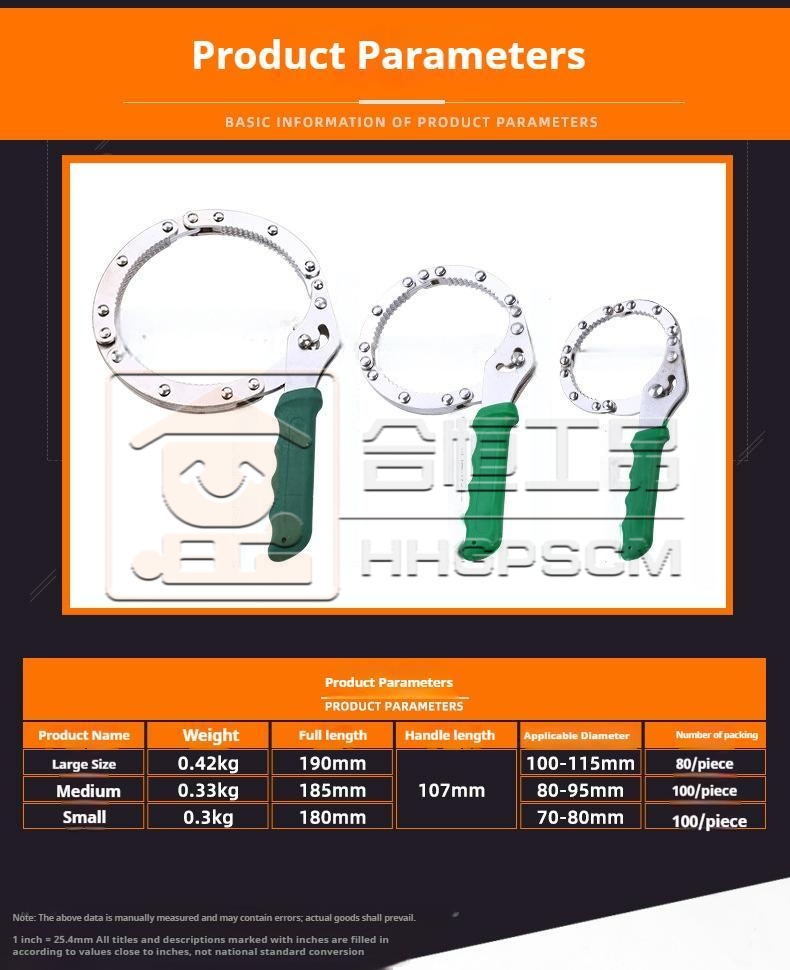 Packing list:1Handcuff-Style Automotive Filter Wrench Ring-Type Filter Element Adjustable Steel Band Oil Filter Wrench