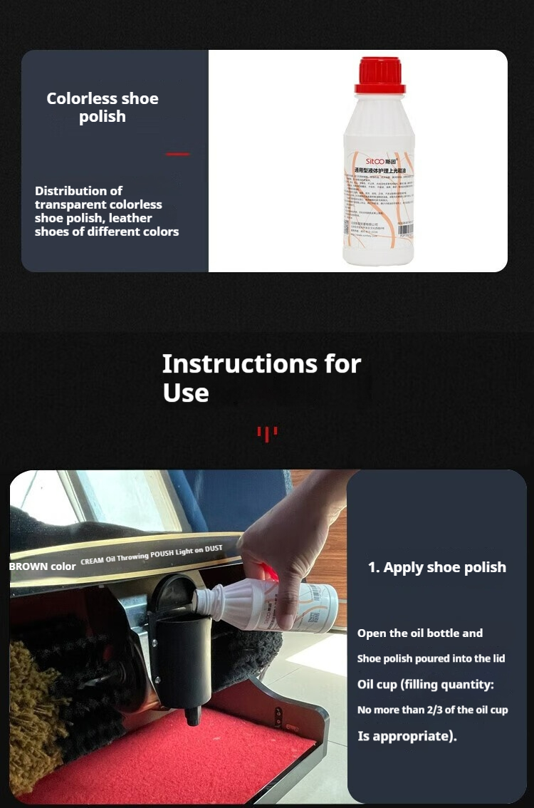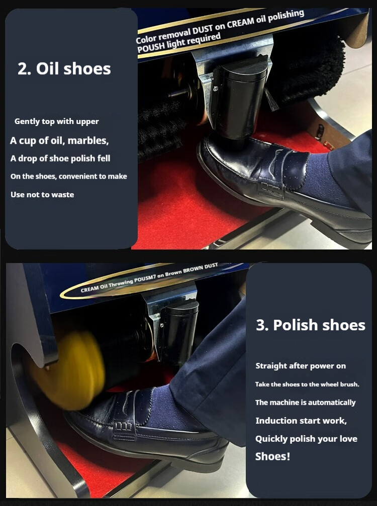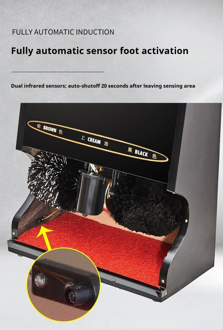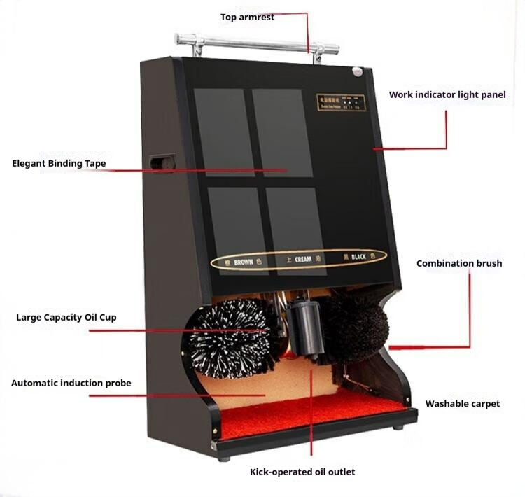 Packing list:1Fully Automatic Shoe Shiner Vertical Sensor-Activated Shoe Polisher Hotel, Club, Mall Electric Shoe Brush & Shine Wonder