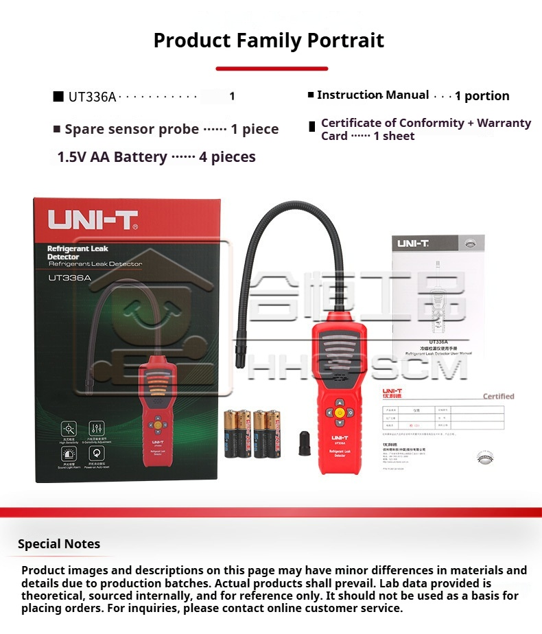 Packing list:1U-Lite UT336A Refrigerant Tester: High-Precision Leak Detector for Automotive Air Conditioning, Freon, and Refrigeration Equipment