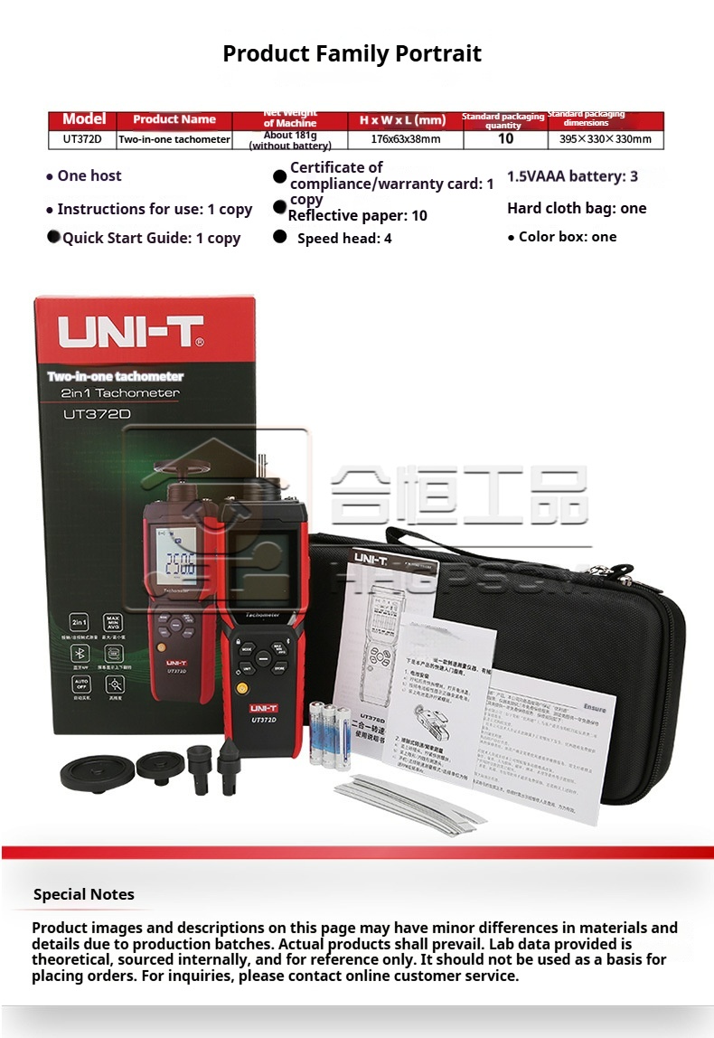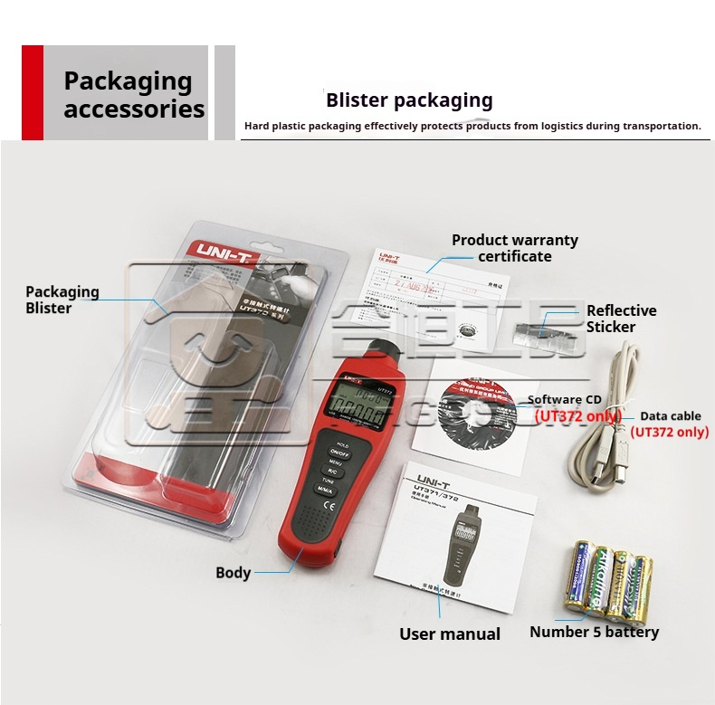 Packing list:1U-Lite Tachometer UT371/UT372D Digital Tachometer: Non-contact Photoelectric Motor RPM Meter
