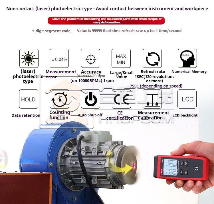 U-Lite Tachometer UT371/UT372D Digital Tachometer: Non-contact Photoelectric Motor RPM Meter