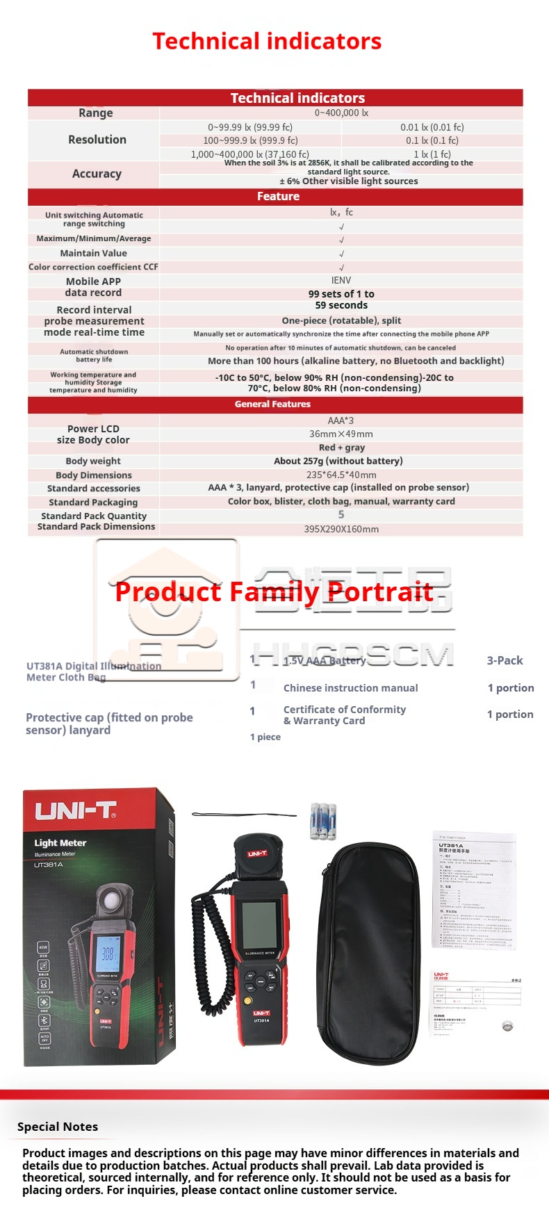 COMMERCIAL SPECIFICATION:UT381A 0-400000lx