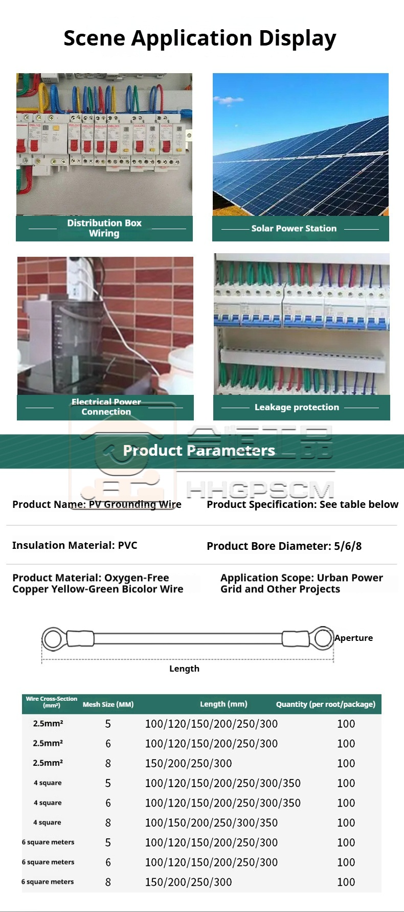 Packing list:1Yellow-Green Bicolor Grounding Wire Photovoltaic Cable Assembly Bridge Tray Flexible Copper Wire Distribution Box Static Bonding Wire Connection Cable 4/6