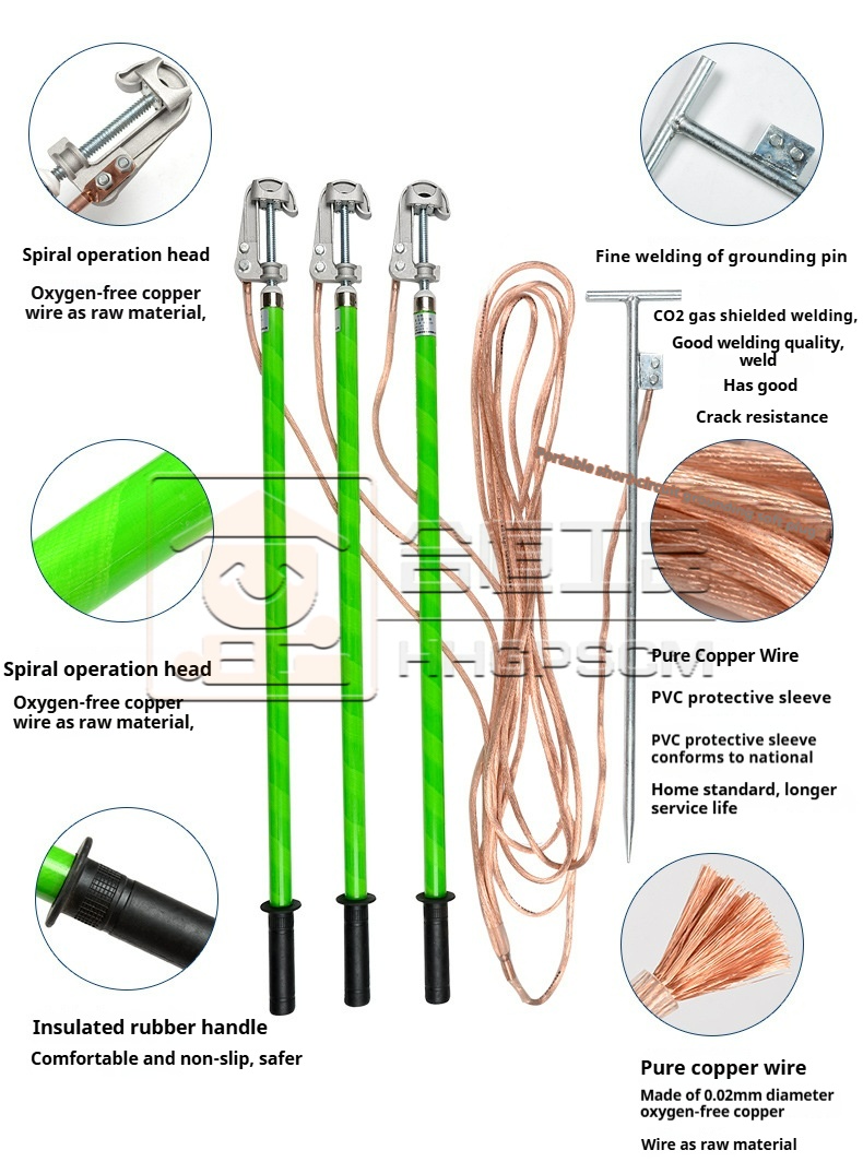 Packing list:1Customized Double-Spring Insulated Grounding Kit: Outdoor Portable 10 kV High-Voltage Piercing Monkey-Head Spiral Grounding Rod