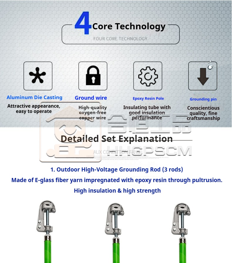 Product name:Customized Double-Spring Insulated Grounding Kit: Outdoor Portable 10 kV High-Voltage Piercing Monkey-Head Spiral Grounding Rod