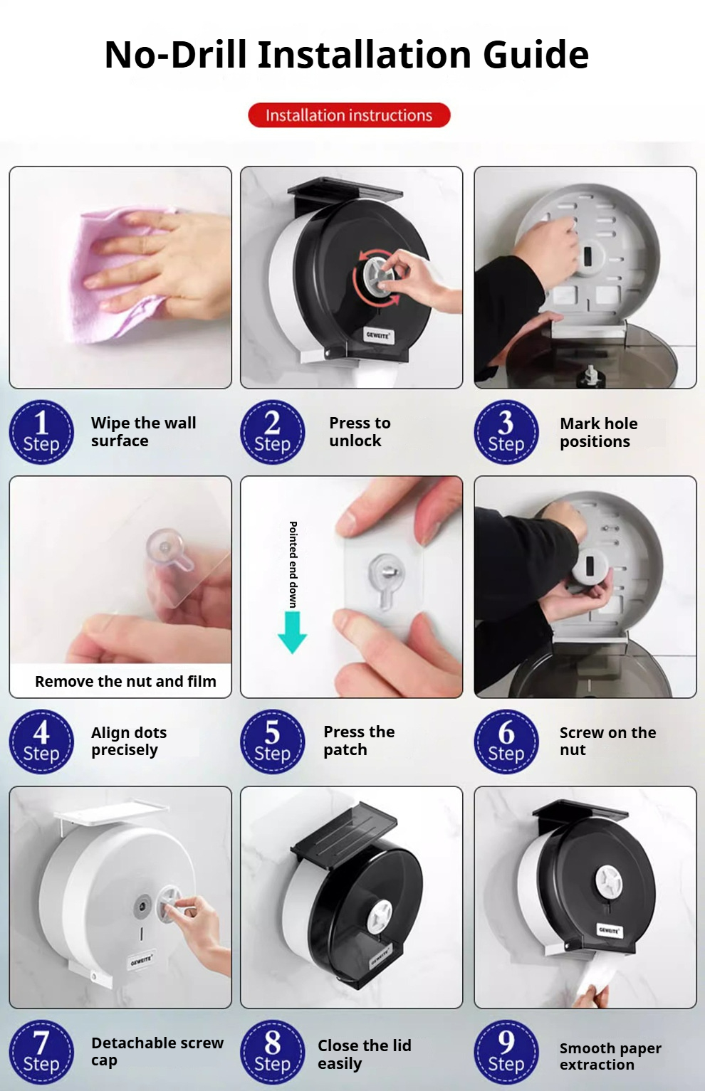 Packing list:1Wall-mounted toilet paper holder for large rolls Bathroom tissue dispenser for jumbo rolls Toilet paper holder for restrooms Hotel hand towel dispenser