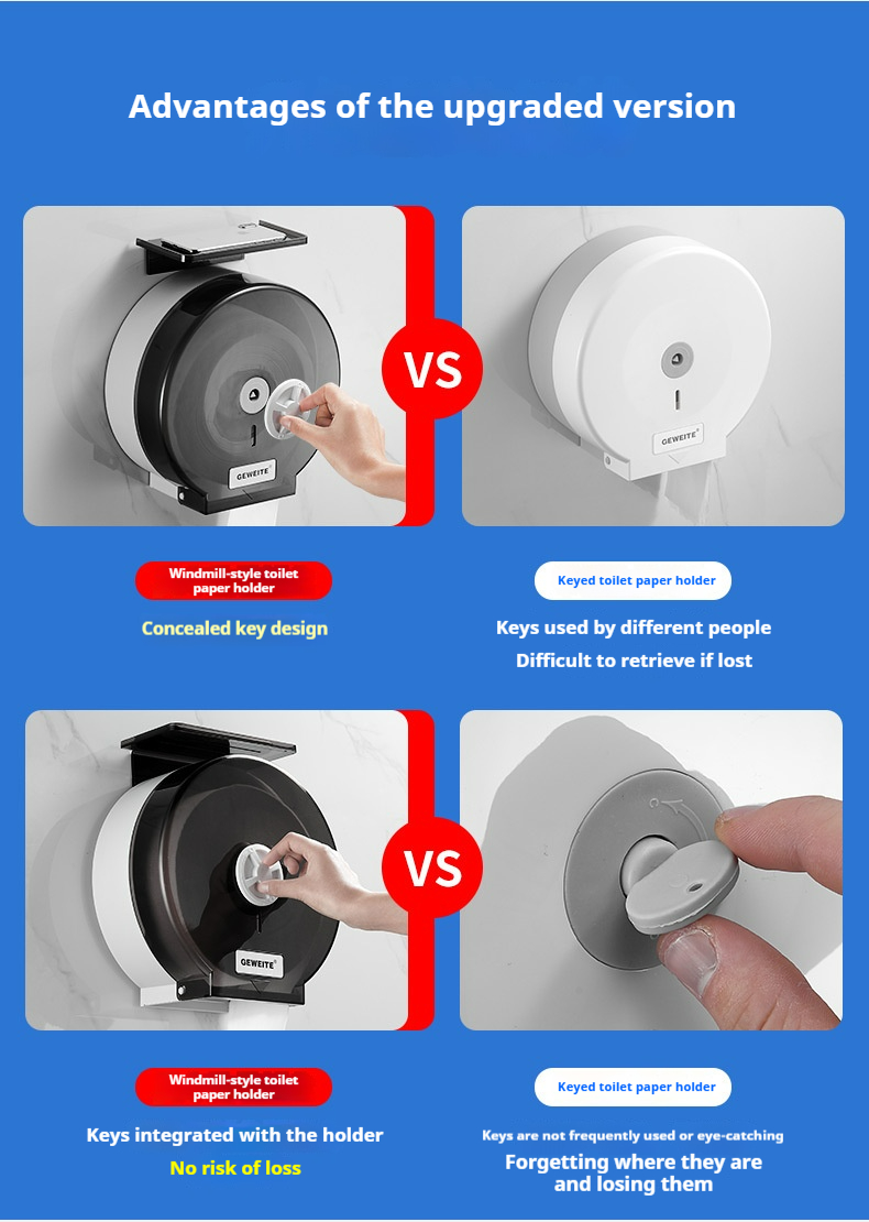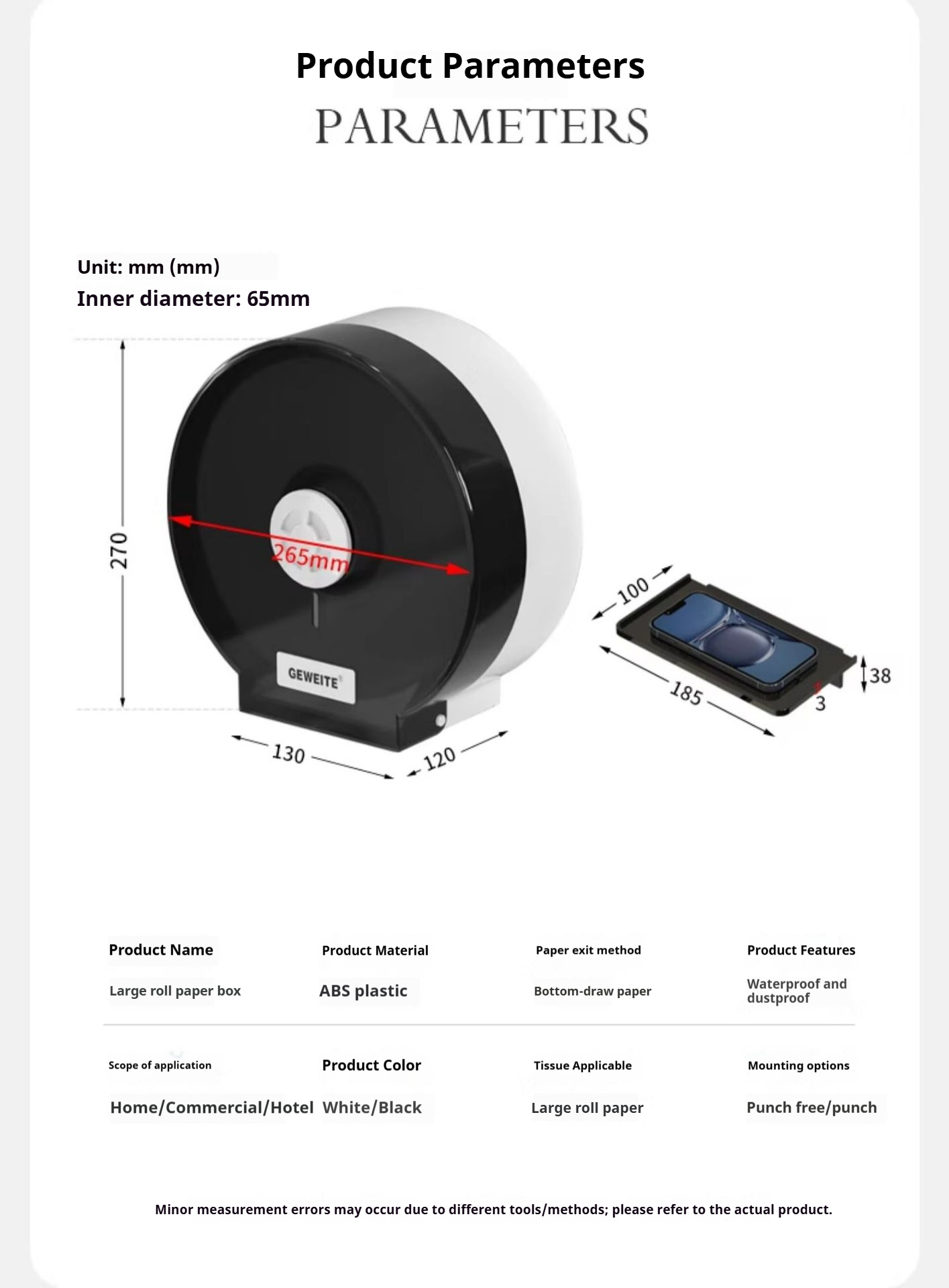 Product name:Wall-mounted toilet paper holder for large rolls Bathroom tissue dispenser for jumbo rolls Toilet paper holder for restrooms Hotel hand towel dispenser
